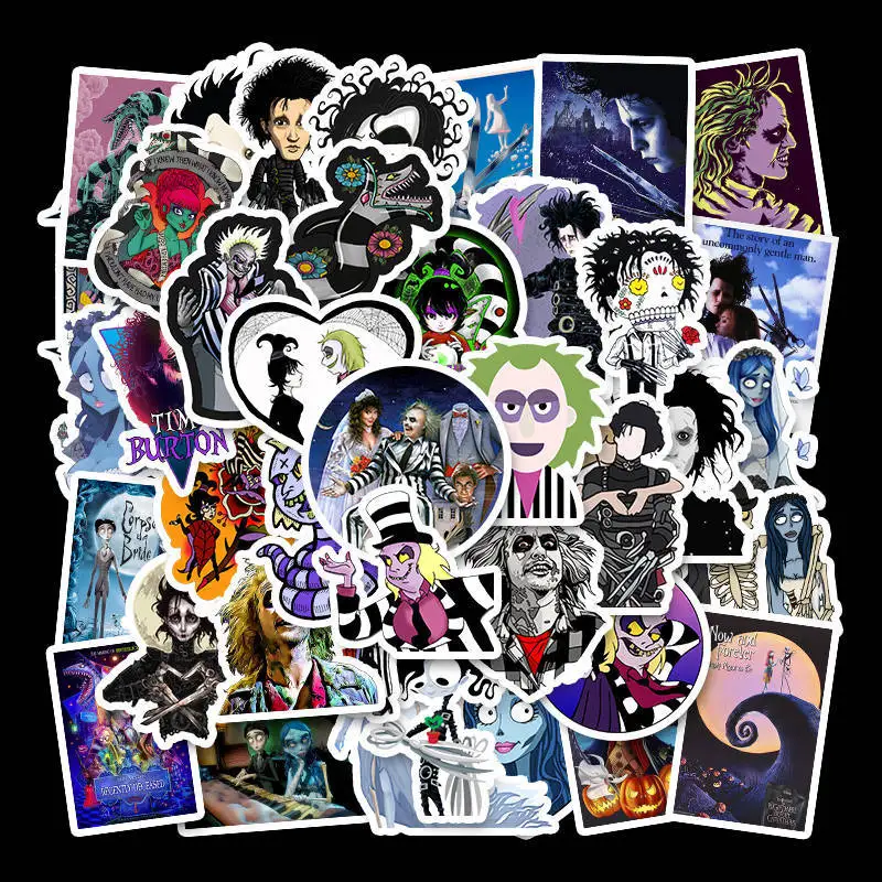 Наклейки для детей, чемодан, скейтборд, ноутбук, 50 шт., Tim Burton Стикеры из фильмов