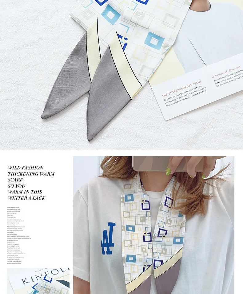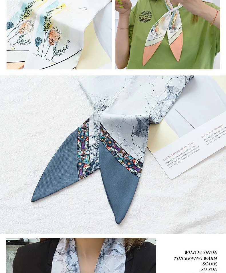 Многофункциональный маленький шарф с принтом, узкий шарф, сумка с ручкой, шелковый шарф, лента, женские декоративные часы, повязка на голову, маленькие ленты