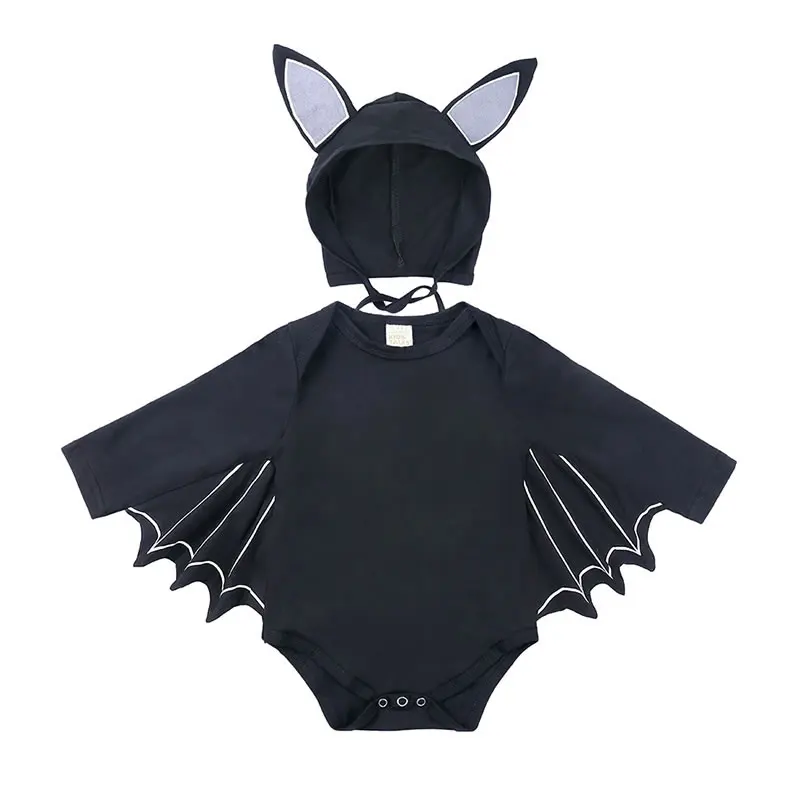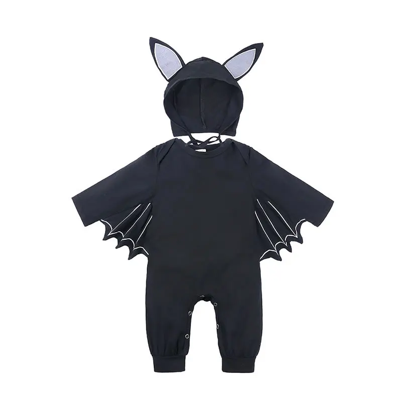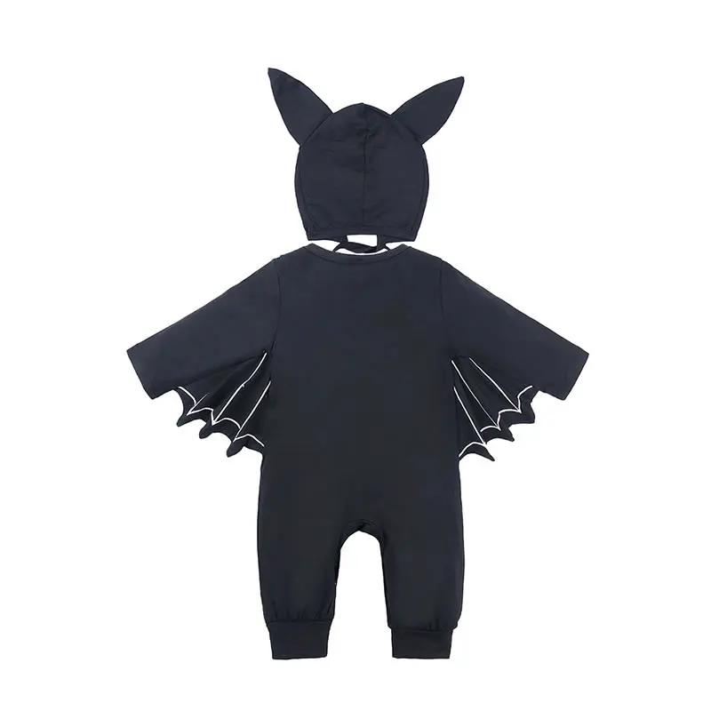 Костюм на Хэллоуин для маленьких мальчиков и девочек, Детский комбинезон с забавной шапкой + париком летучая мышь, наряд, костюм для сна для новорожденных, комбинезон из ткани