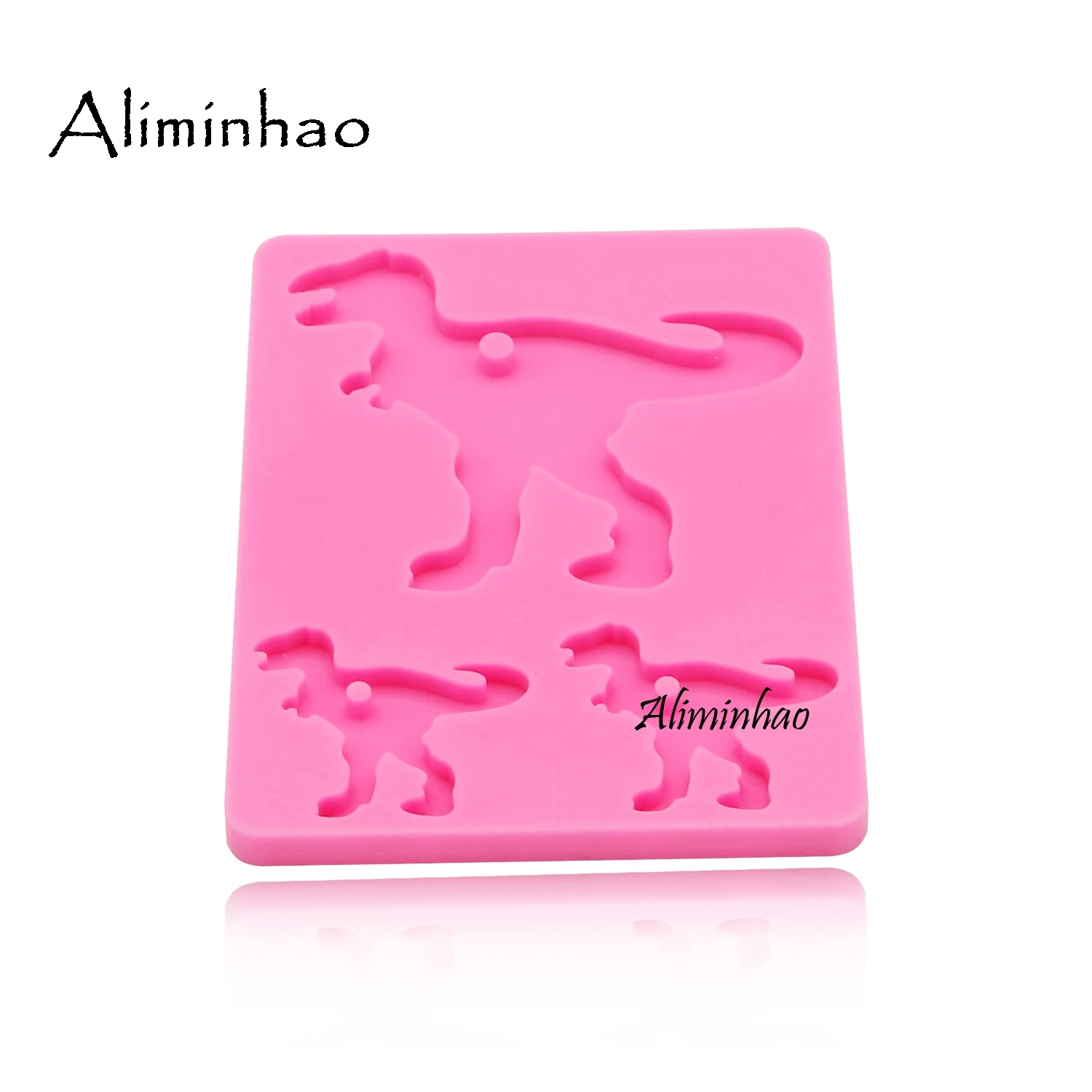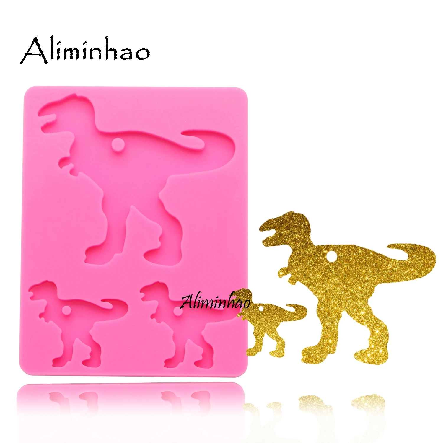 Блестящие силиконовые брелоки DY0101 в виде семьи динозавров, форма в виде животных, динозавров, мамы и ребенка, глина для рукоделия, форма из смолы