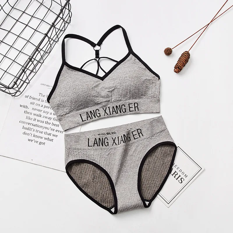 Комплект нижнего белья для девочек-подростков, бюстгальтер пуш-ап с буквенным принтом, Модные дышащие трусики без косточек