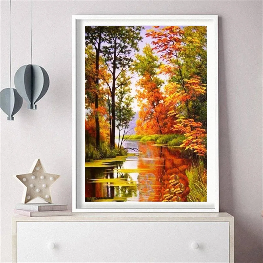 5D алмазная картина, полностью квадратная Бриллиантовая мозаика пейзаж Алмазная вышивка осенний пейзаж