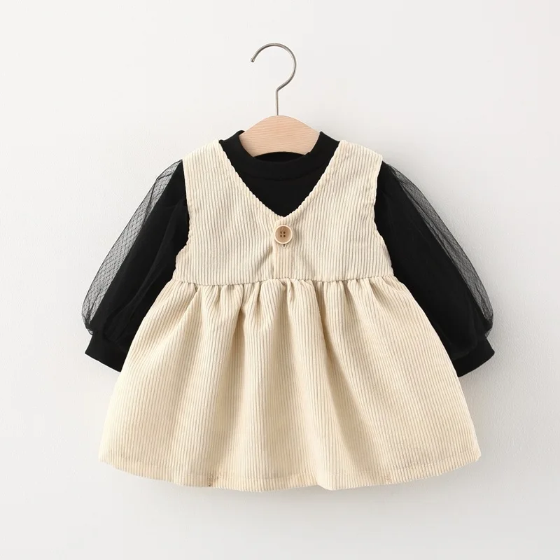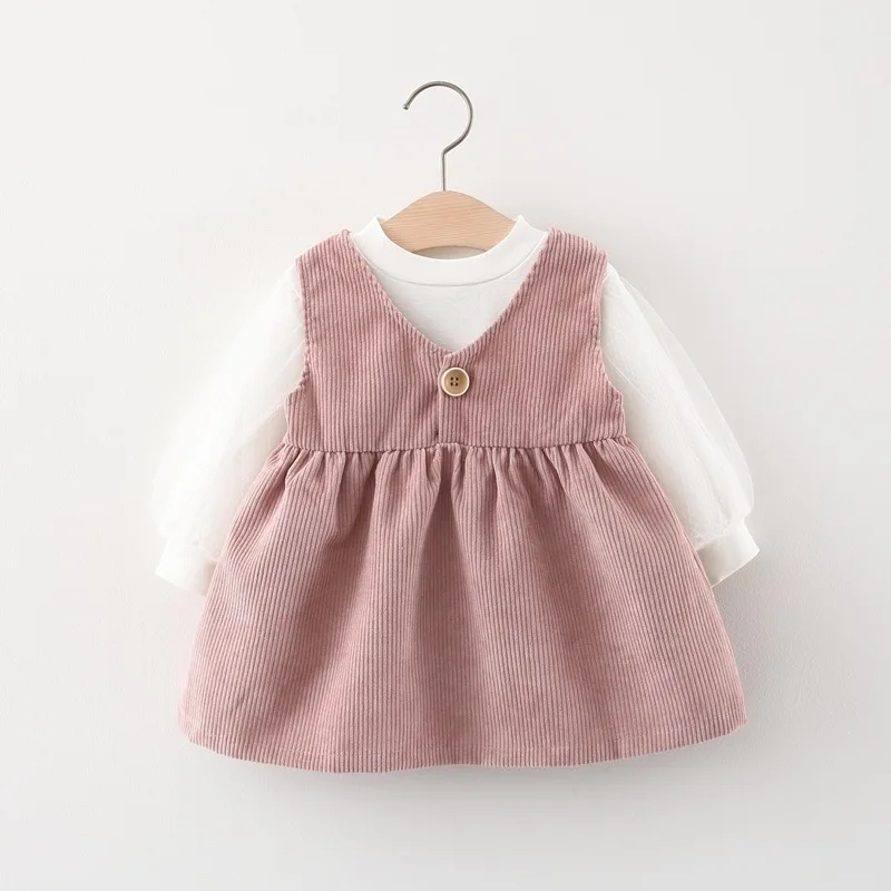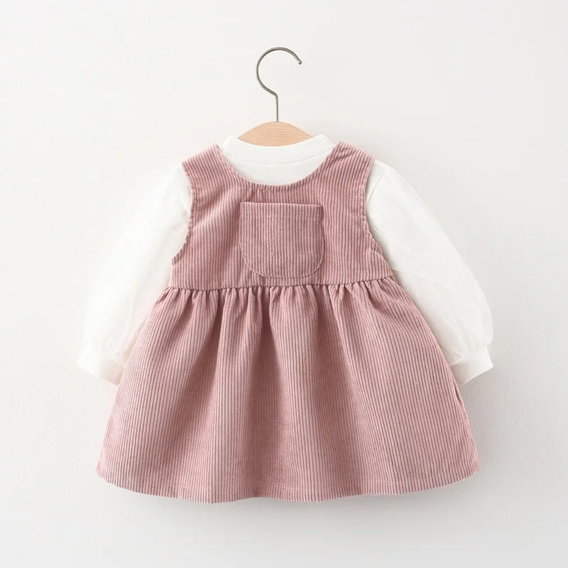 Рубашка с длинным рукавом + платье для маленьких девочек, комплект из двух предметов, осенне-весеннее праздничное платье принцессы для новорожденных