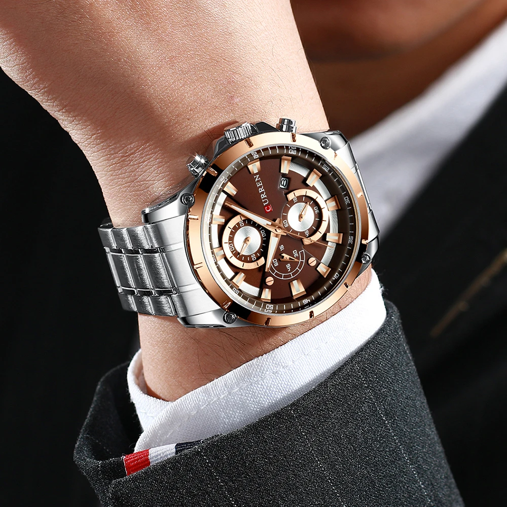 CURREN Мужские спортивные военные часы повседневные Бизнес наручные часы Мужские кварцевые часы из нержавеющей стали Мужские Хронограф и дата