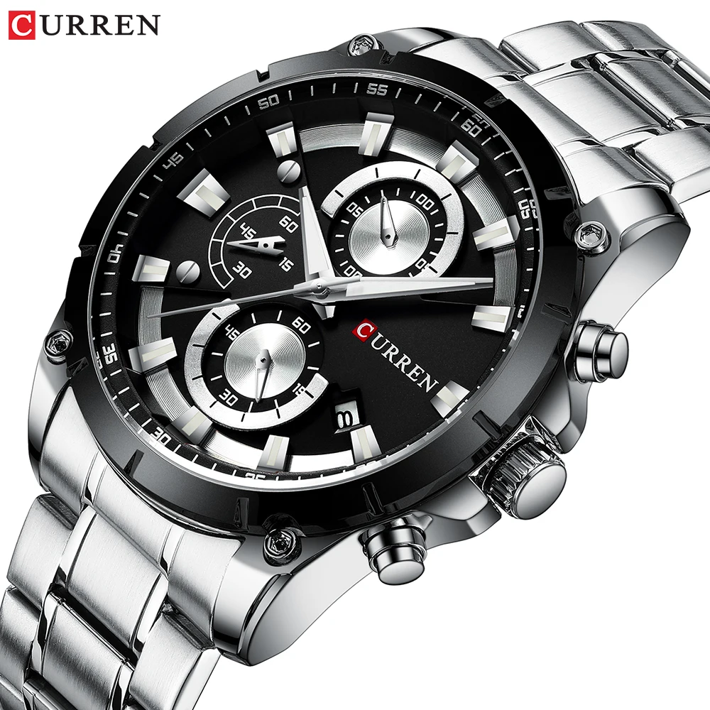 CURREN Мужские спортивные военные часы, повседневные деловые наручные часы, мужские кварцевые часы из нержавеющей стали, мужские часы с хронографом и датой
