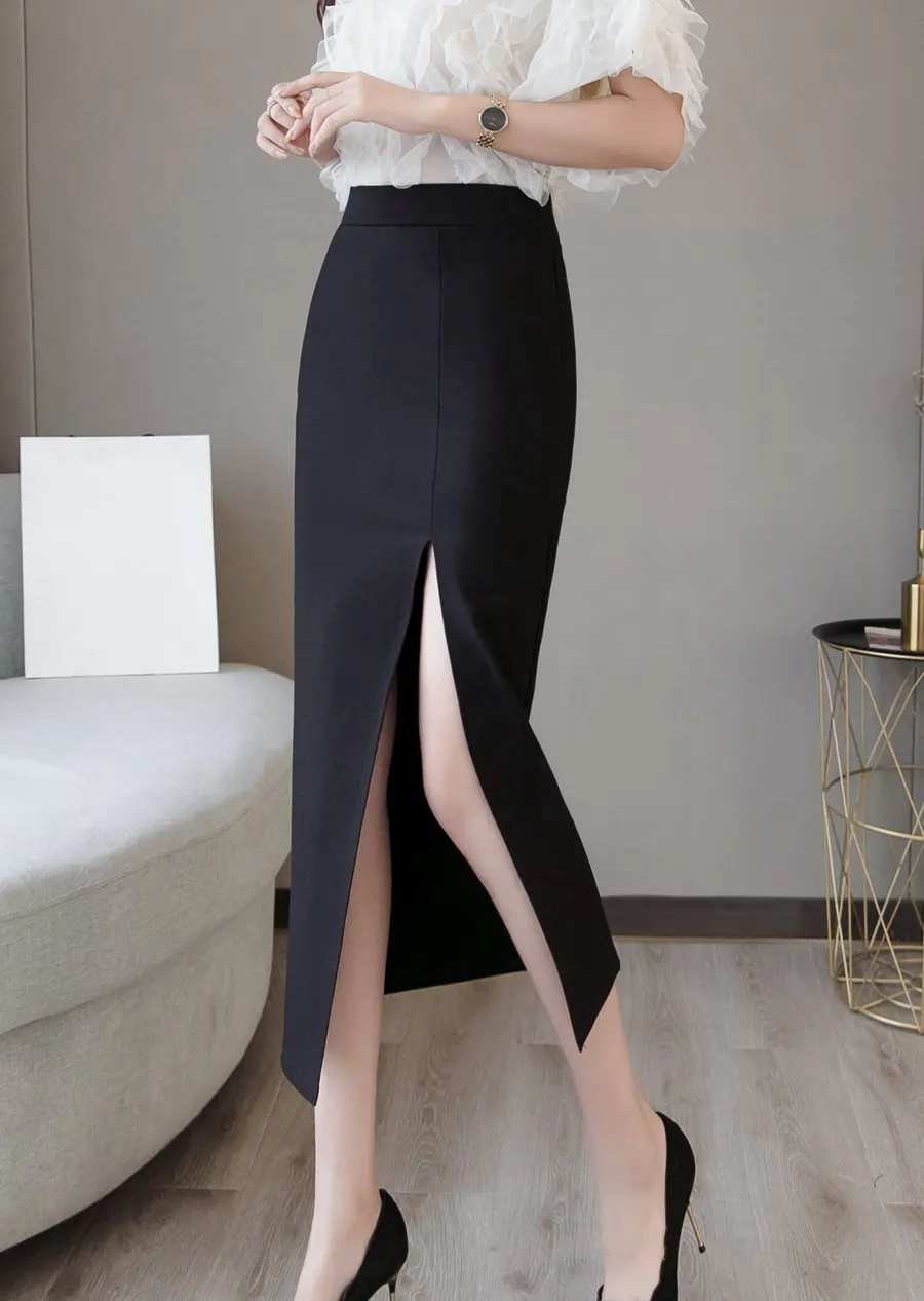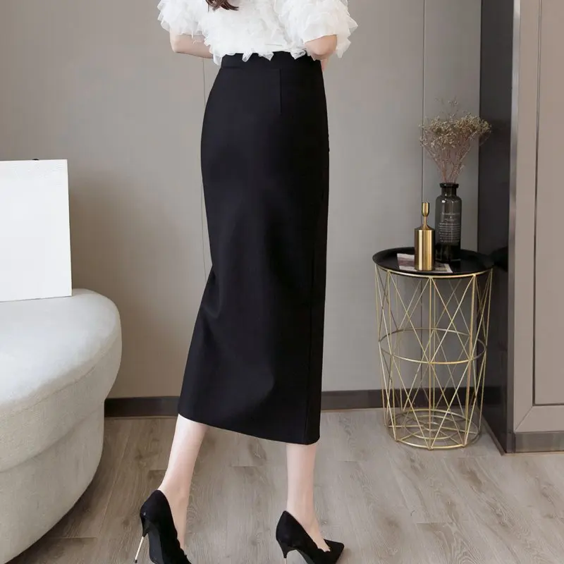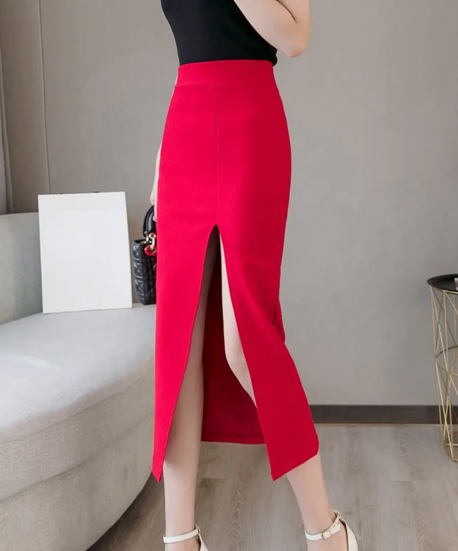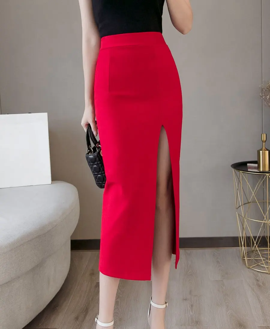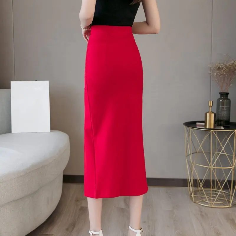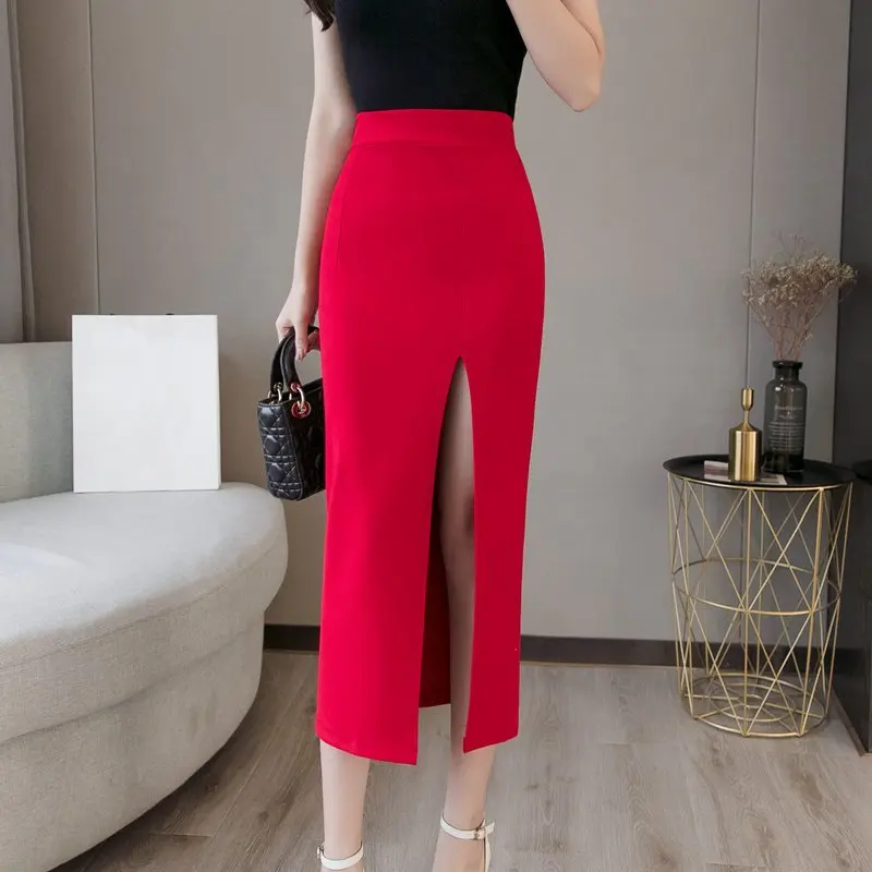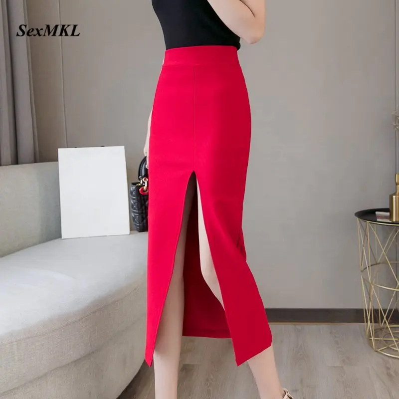 Плюс Размер Faldas Mujer Moda 2019 Мода Длинные Юбки Женская Высокая Талия Красная Корейская Юбка Офис Женщины Сексуальная Черная Юбка