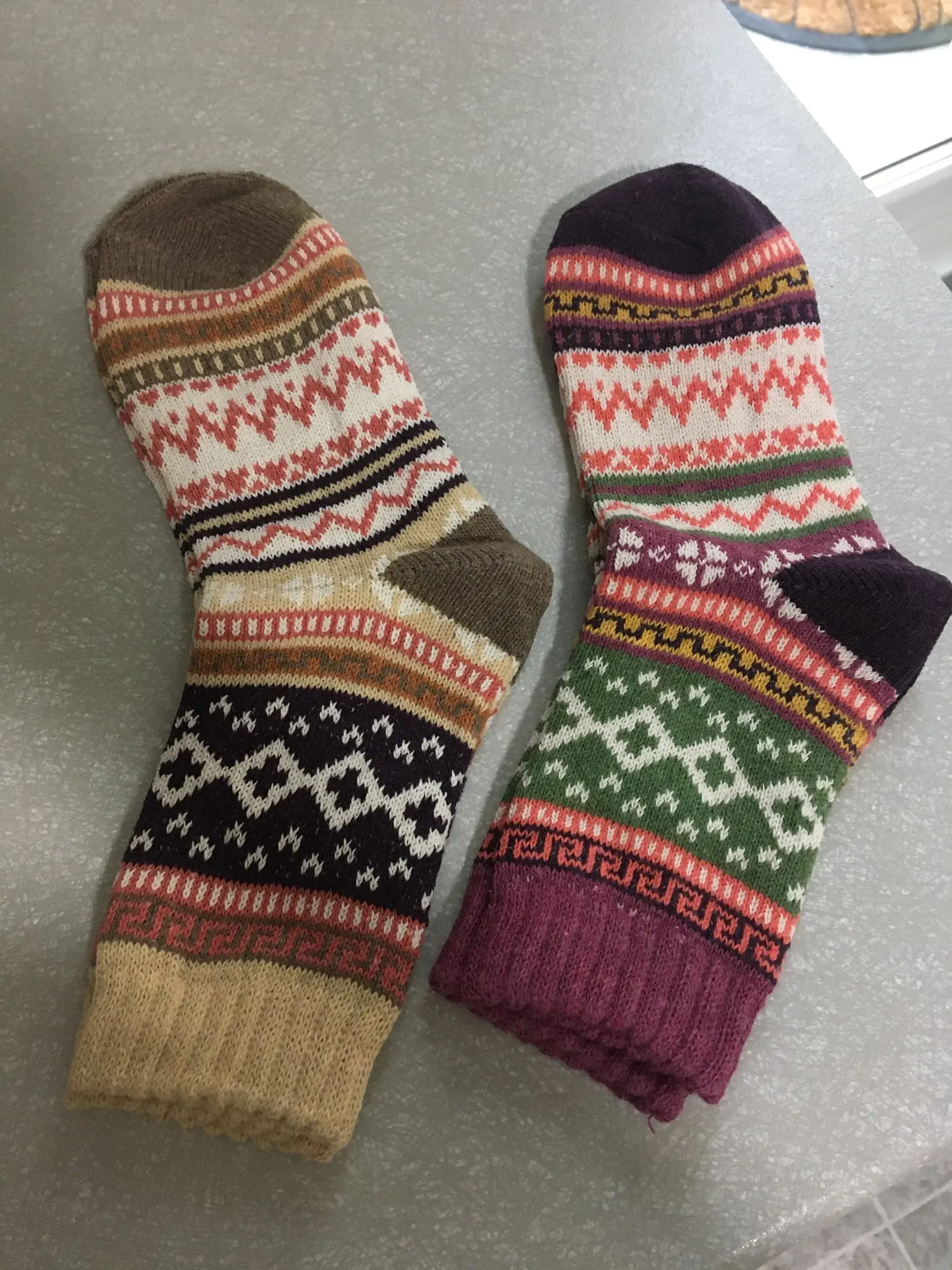 Не точное описание. Носки частично содержат шерсть. Плохое качество, нитки выбиваются из всех узоров.