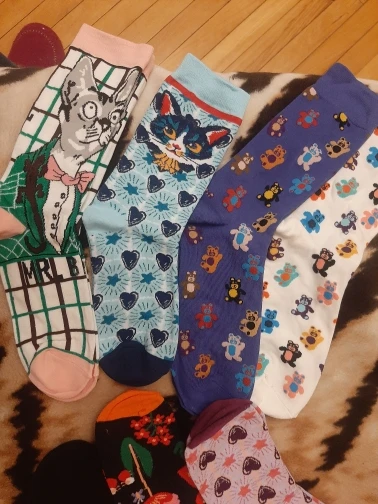 Отличные носки! Точно так же, как на фотографиях продавцов! Очень хорошее качество, яркий и удобный! Они также довольно теплые! Люблю их! Доставка очень быстрая! 5 звезд!