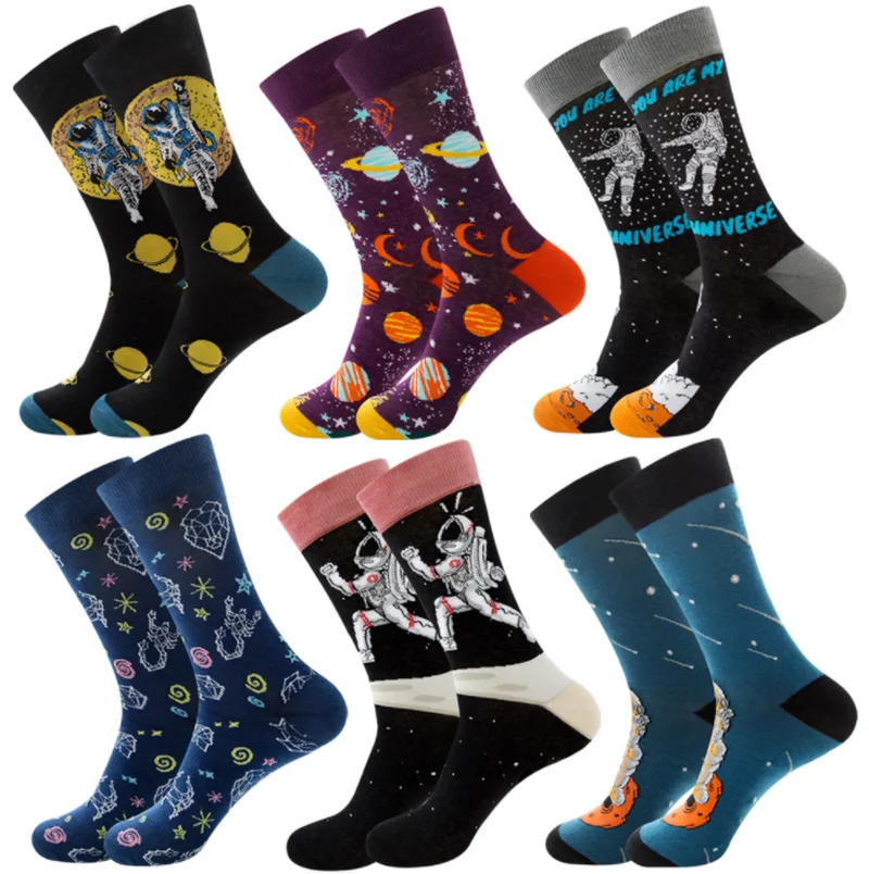 Носки мужские, в стиле хип-хоп, Осенние, из чесаного хлопка, с изображением фруктов и мультфильмов, Meias 404