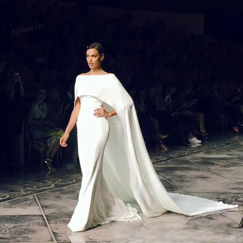 Арабские женские белые вечерние платья с накидкой, Длинные Простые Стретч атласный Русалка Формальные платья Вечерние платья на заказ 2020