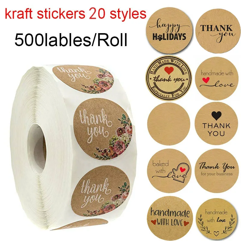 Круглая наклейка из натуральной крафт-бумаги с надписью Thank You s этикетки для печати 500 ярлыки в рулоне ручная работа наклейка для офиса