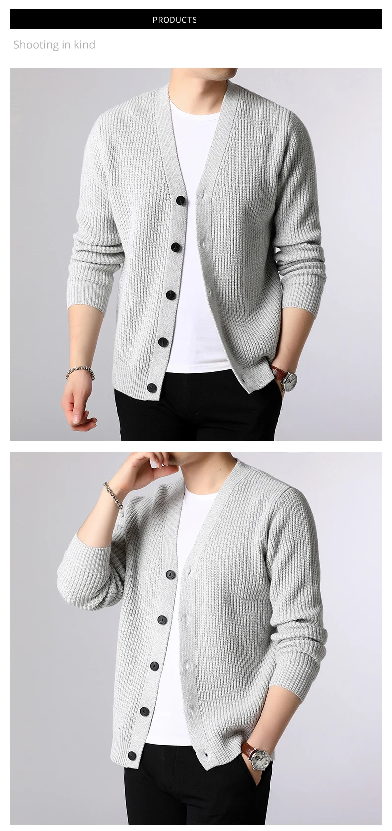 Мужской плотный кардиган, вязаные джемперы с V-образным вырезом, по...
