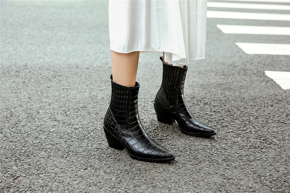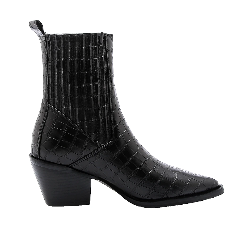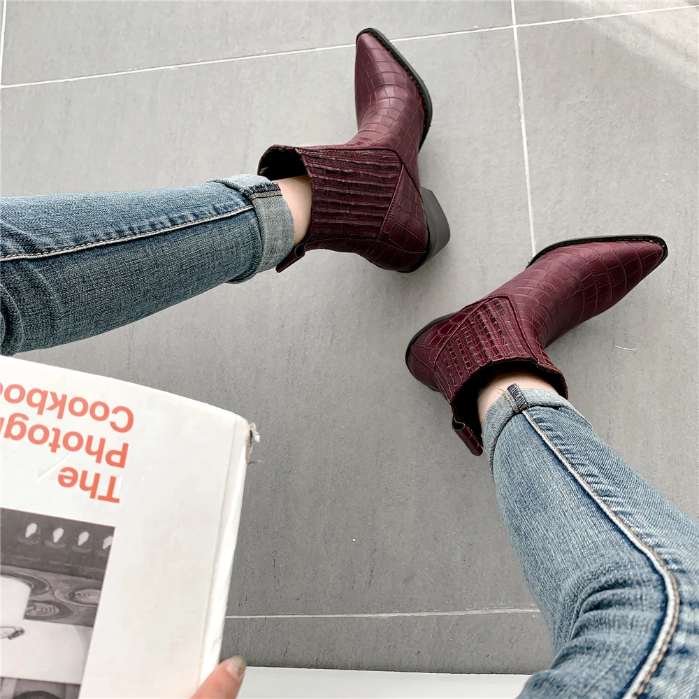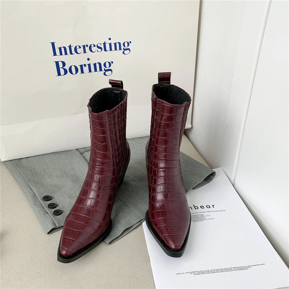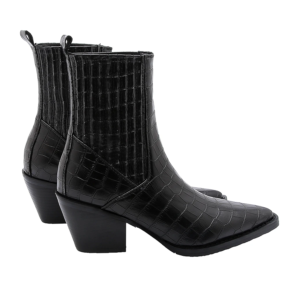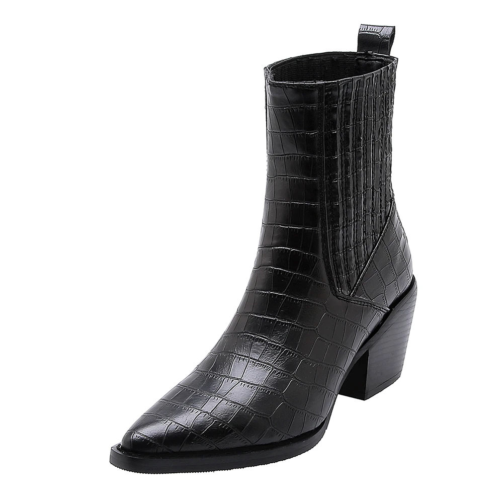 Ботинки женские ковбойские из искусственной кожи с тиснением, с острым носком