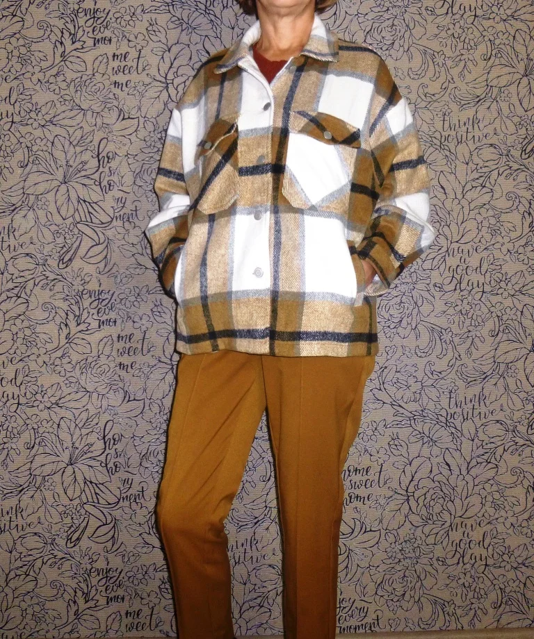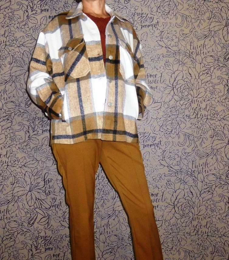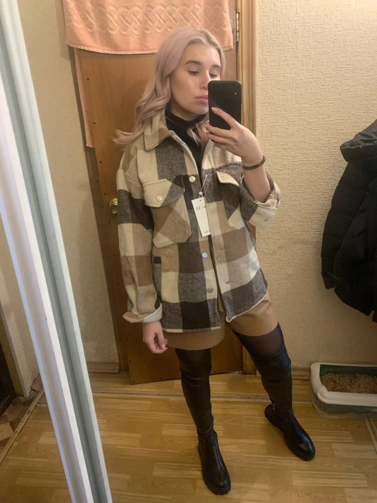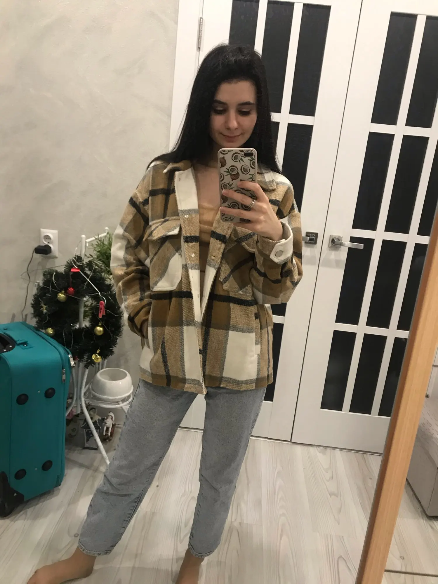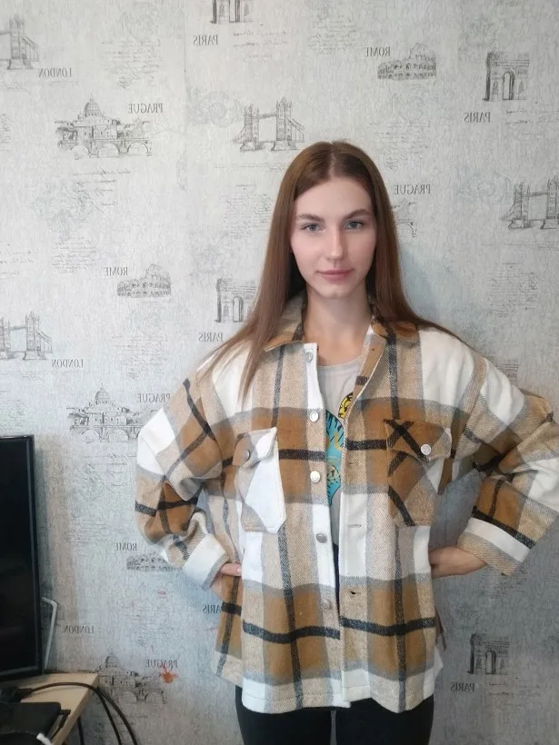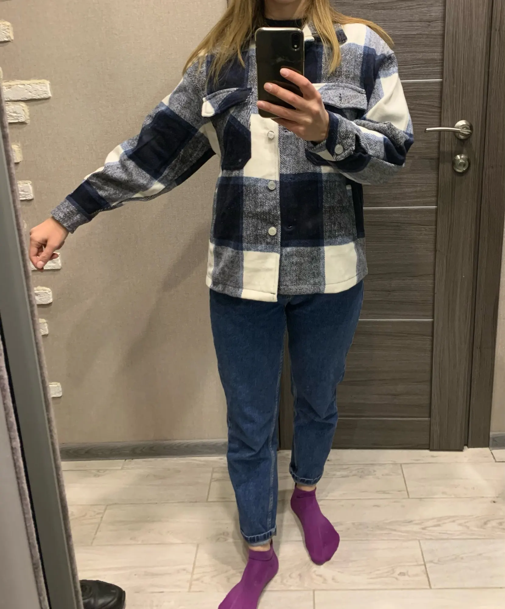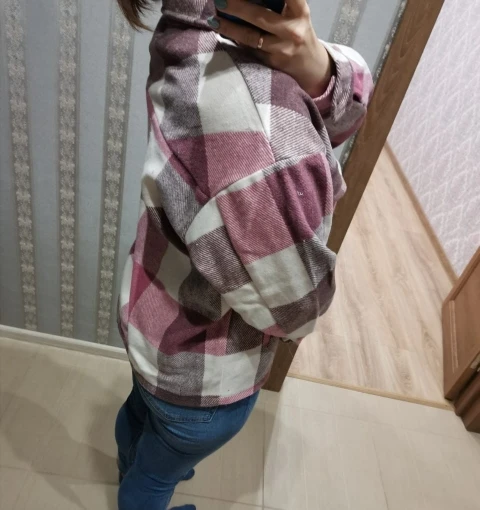 Рекомендую! Мне очень понравилась куртка-рубашка! Вот прям то, что надо. Как здесь любят говорить, одна из лучших покупок на али. Доставка. 13 дней, до кассы «Пятерочки», отправляли долговато, зато потом долетела за несколько дней. Запах. Чуть-чуть был, не критично. Цвет. Точь в точь, как на картинке продавца, насыщенный, яркий, впрочем и моя камера вполне точно его передала. Качество. Не колючая, Слава богу. Строчки ровные, карманы симметричные. Ткань по фактуре «приглаженный ворс». Размер. Мой рост 165, вес 63, 92/73/95, ношу М, заказала также М. Село, прям как надо! Оверсайз, длина рукава полная, рукав спущен, что не делает фигуру квадратной, и куртка прямого кроя, не удлиненная. Несмотря на то, что куртка прямого кроя, рукава довольно объемные, да ещё и в клетку, она не полнит. Задумывалась заказывать L и рада, что заказала в размер.