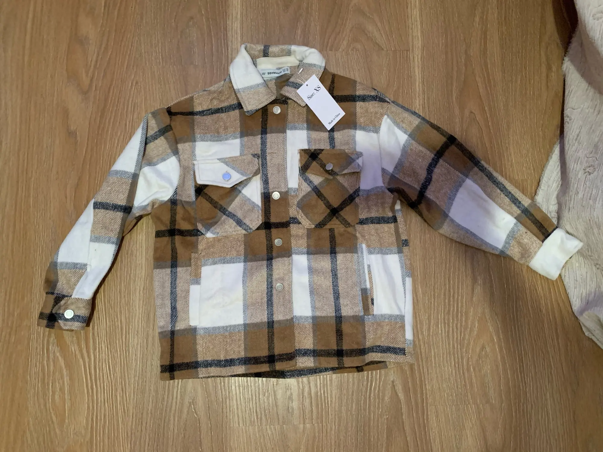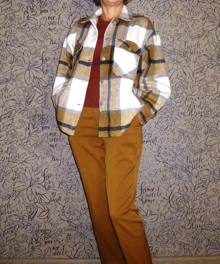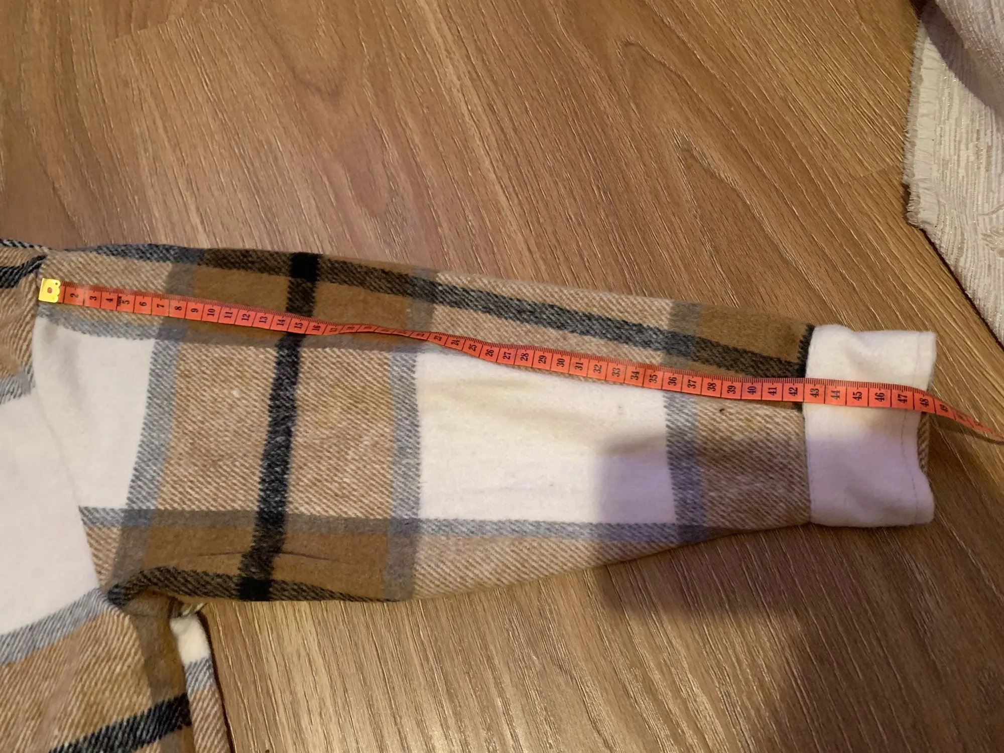 Покупала на распродаже за 16,2$, для этой цены отличная рубашка-куртка. Довольно колючая, поэтому без майки ее не поносишь. Рукав на мою длину руки от плеча до кисти 58 см прямо впритык, но ещё в пределах нормы. На ОГ 83, ОТ 65 и ОБ 93, рост 163 см села свободно, под низ можно спокойно тёплый свитер надеть.