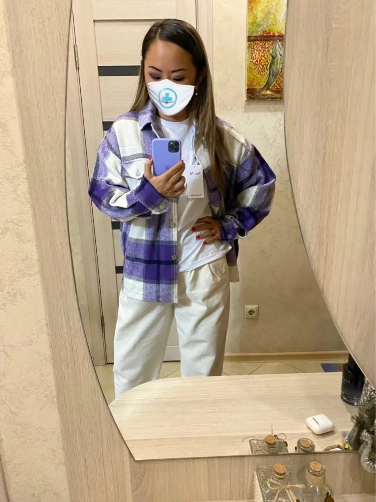 На мои параметры 82 * 67 * 94 рост 165, размер XS подошёл идеально! ⠀ Это замечательная вещь! Конечно, это элемент верхней одежды,а не обычная рубашка,как многие могли подумать. Поэтому, она отлично заменит джинсовую куртку тёплой весной или ранней осенью,под водолазку,плотный свитер) ⠀Мой Инстаграм с обзорами на вещи @zaborovskaya_anna