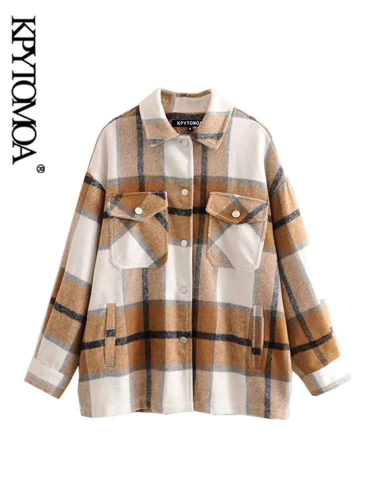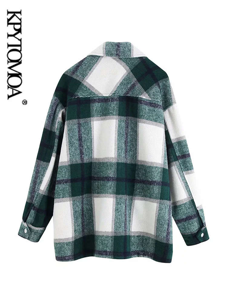Куртка женская клетчатая с воротником с отложным воротником и длинным рукавом