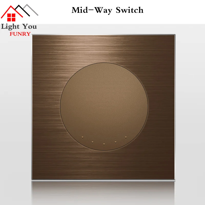 Настенный выключатель с алюминиевой матовой коричневой панелью, 1, 2, 3, 4 клавиши, 1 канал, 2 канала, розетка европейского стандарта, 90-250 В, переключатель со светодиодным индикатором