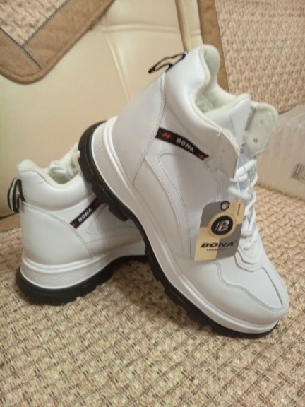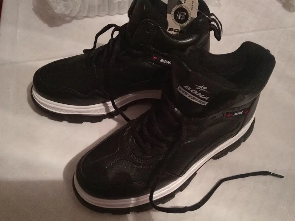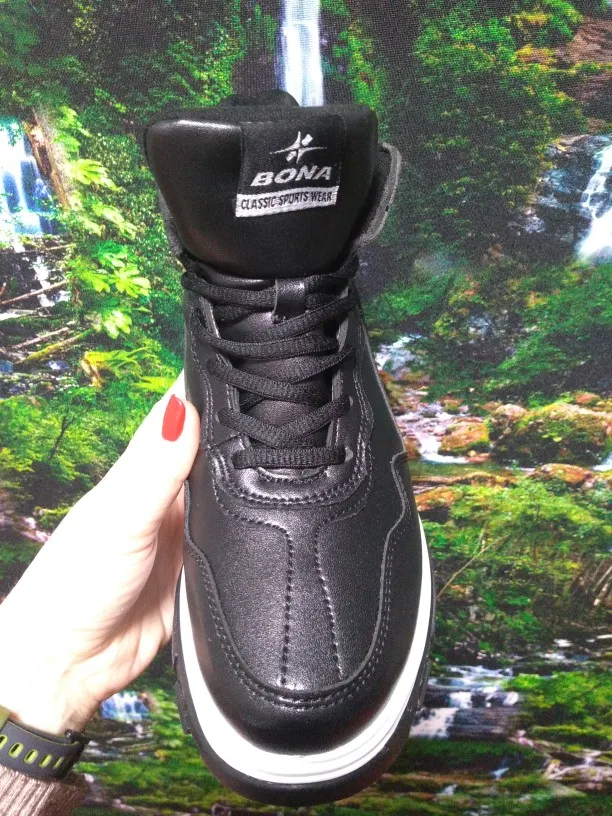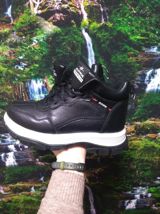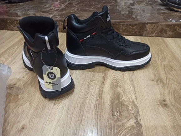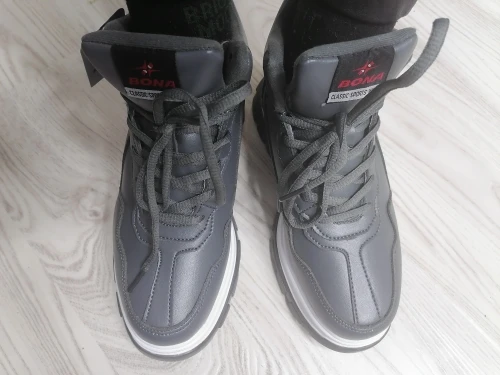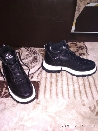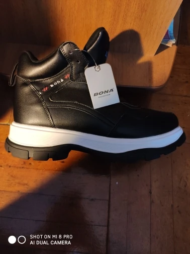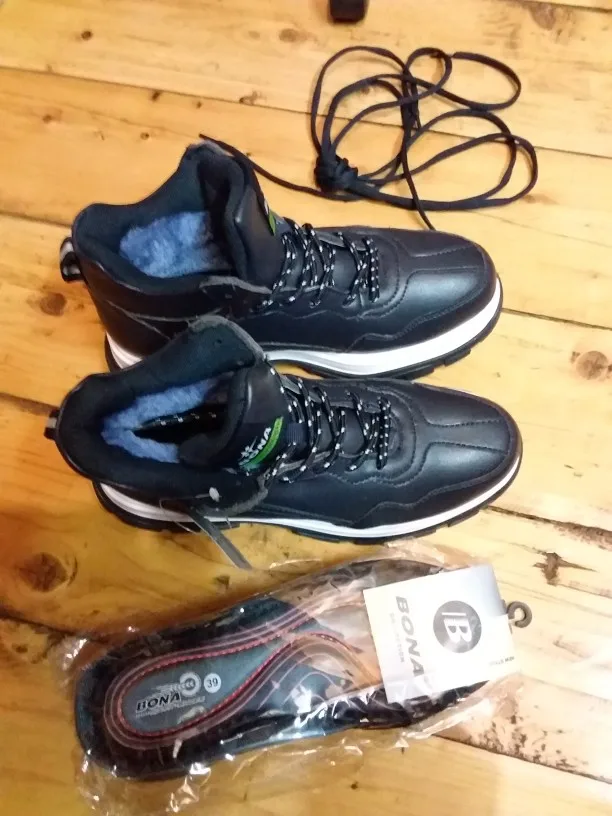заказываю уже 8 пару обуви Bona, очень понравились кроссовки, решили вот и ботинки заказать, они, конечно, не на сильные морозы, но думаю до 10 мороза выдюжат, если не стоять на остановке, то может и больше. Удобная колодка, подошва толстая, очень понравились, выглядят хорошо. Продавец по просьбе положил доп. стельки, но они обычные для кроссовок, без меха. Спасибо, приятно, будем носить, еще ждем мужские, пока не пришли.