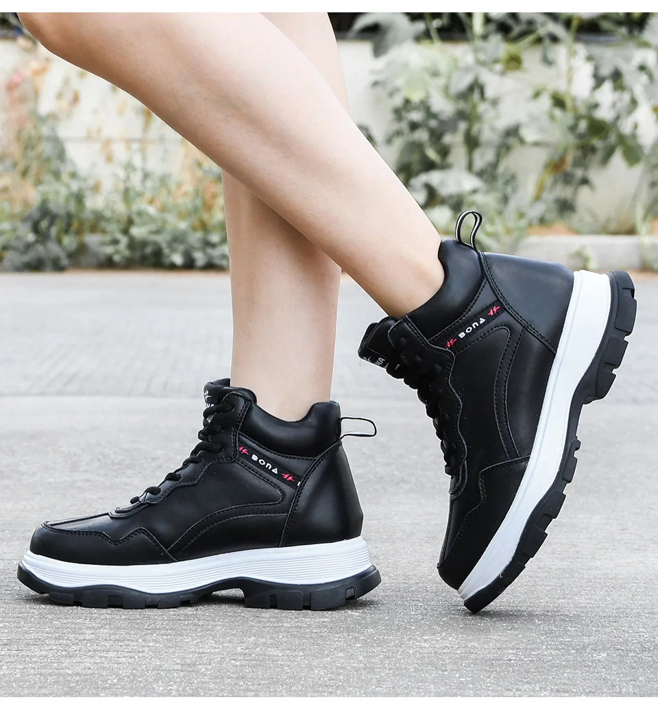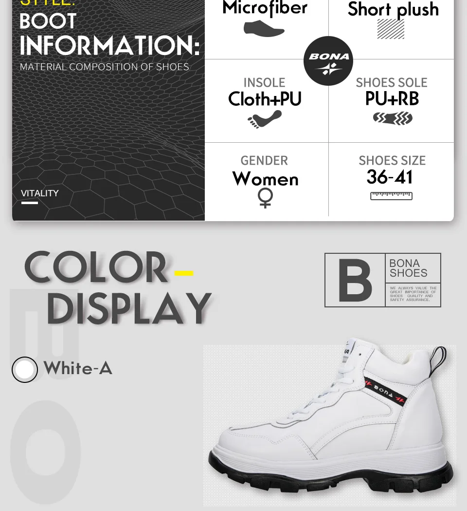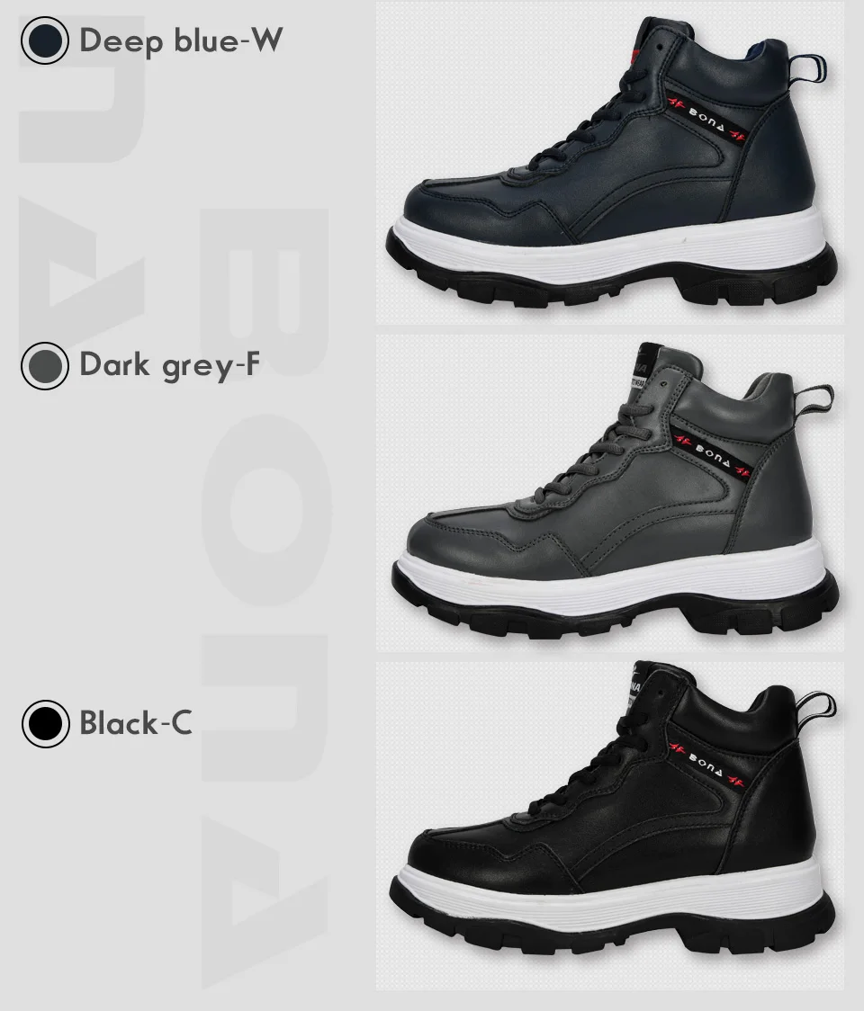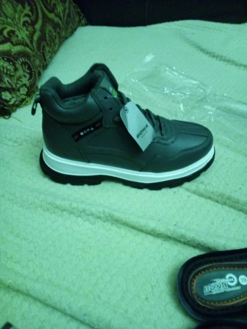 заказываю уже 8 пару обуви Bona, очень понравились кроссовки, решили вот и ботинки заказать, они, конечно, не на сильные морозы, но думаю до 10 мороза выдюжат, если не стоять на остановке, то может и больше. Удобная колодка, подошва толстая, очень понравились, выглядят хорошо. Продавец по просьбе положил доп. стельки, но они обычные для кроссовок, без меха. Спасибо, приятно, будем носить, еще ждем мужские, пока не пришли.