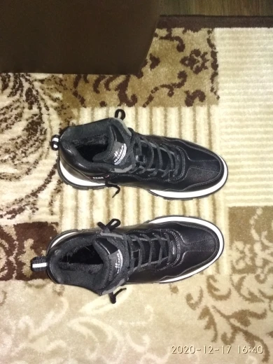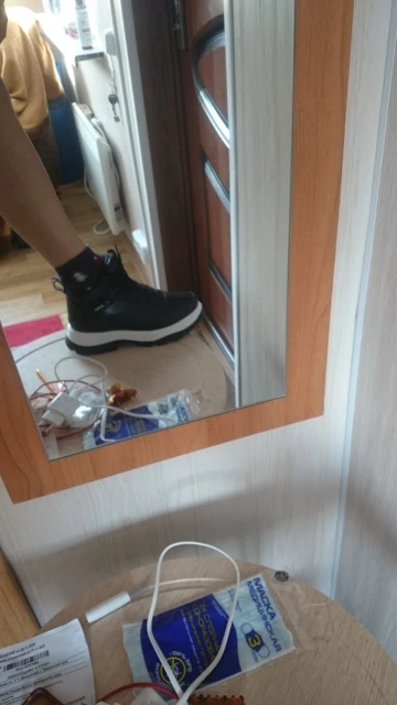Ботинки хорошие, тёплые, удобные. Ничего нигде не давит. К самим ботинкам вообще никаких претензий. НО! Мы заказывали 2 пары ботинок в начале сентября, мужские и женские. Так вот. На следующий день после заказа продавец радостно сообщил что у них акция и в подарок к ботинкам он бесплатно кладёт ещё пару стелек, но при этом делит посылку на 2 части и трек номер второй части скидывает в сообщениях. ОБРАТИТЕ ВНИМАНИЕ! Трек номер у мужских и женских ботинок в заказах одинаковый! Через 2 недели после заказа нам приходят ботинки, мужские, с стельками к женским ботинкам внутри... Я пишу продавцу, спрашиваю, мол, в чем дело, почему только мужские и почему показывает что доставлены обе пары ботинок? Он отвечает: Так смотрите другой трек номер! Смотрю... Ботинки ожидают отправки из Китая. Ну ладно, думаю, мало ли, вдруг у них там карантин до сих пор, или ещё какие то проблемы... Проходит ещё 2 недели. Никаких изменений. Все так же ожидает отправки... Снова пишу продавцу и прошу проверить...