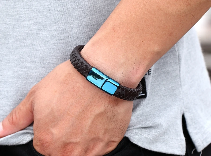 При смешанном заказе более $180 Бесплатная доставка: DHL,Aramex, Fedex или EMSНазвание:Черный и коричневый кожаный мужской браслет из нержавеющей сталиМатериал: натуральная кожа/нержавеющая стальВысокое качество на 100% абсолютно новыйРазмер: 19 см 21 см 23 смПокрытие: 3 раза тонкая полировка зеркального покрытия, не легко выцветаетПри заказе более 2 штук скидка 3%