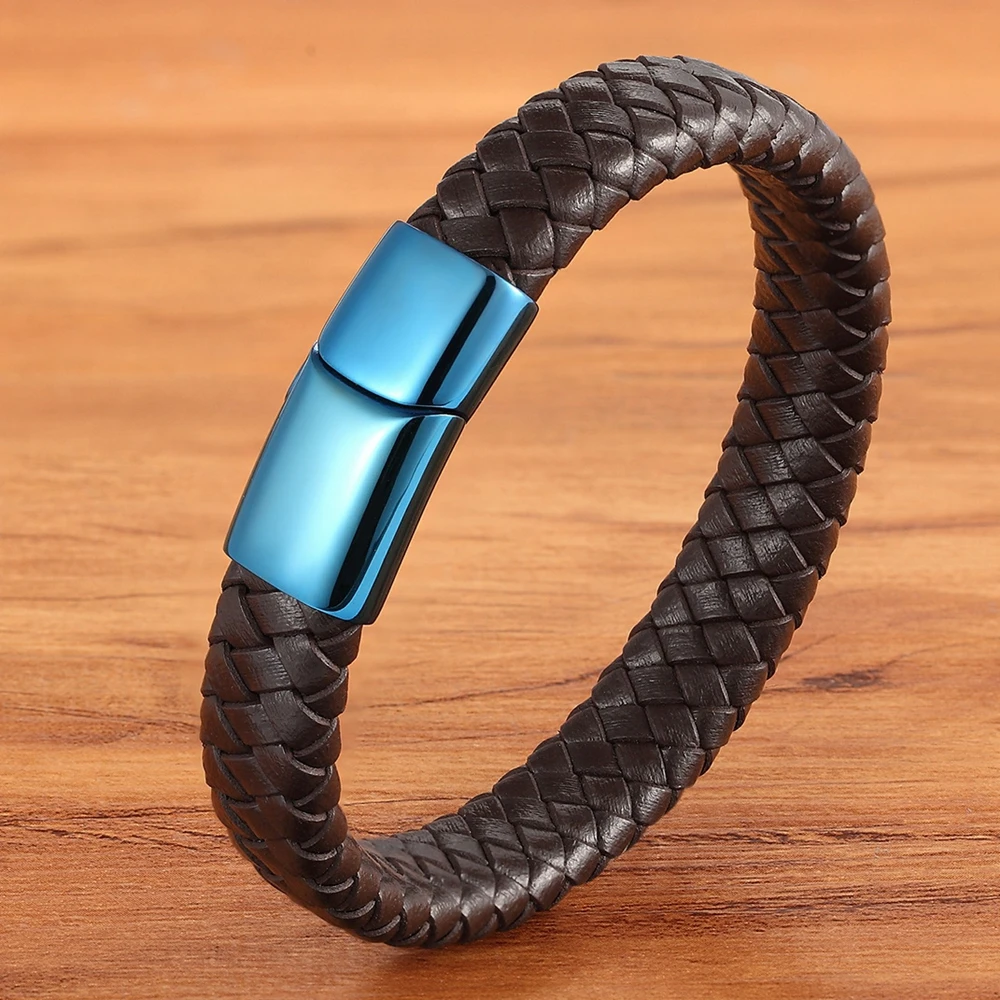 Мужской кожаный браслет из нержавеющей стали, комбинированная синяя...