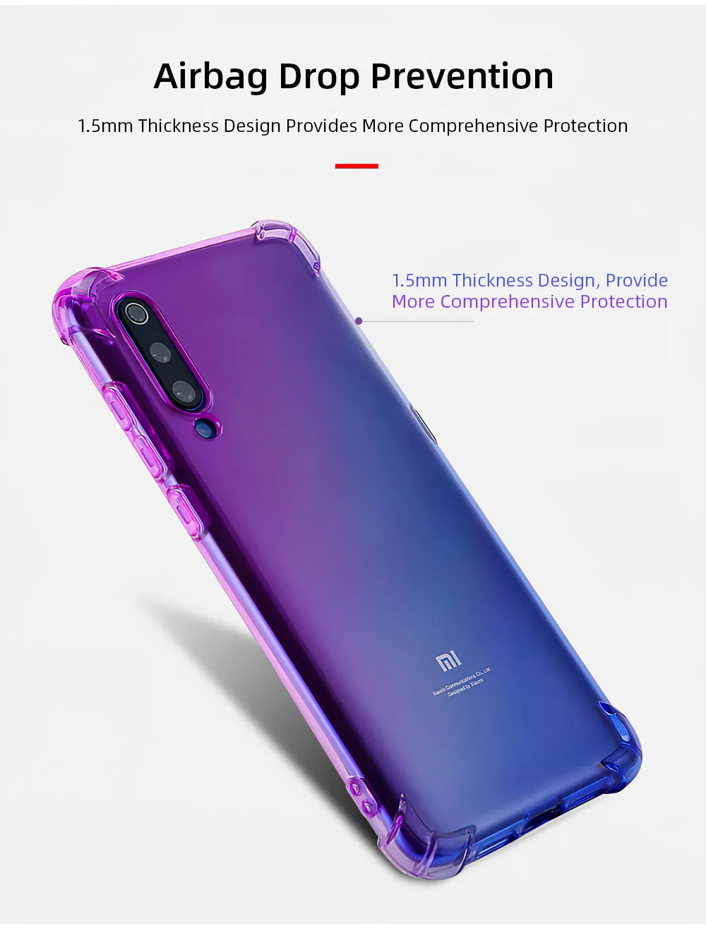 Градиентные прозрачные чехлы для телефонов Xiaomi Mi 9 se Redmi Note 7 6 K20 Pro 7A cc9e, Мягкий Прозрачный ударопрочный чехол из ТПУ с полным покрытием