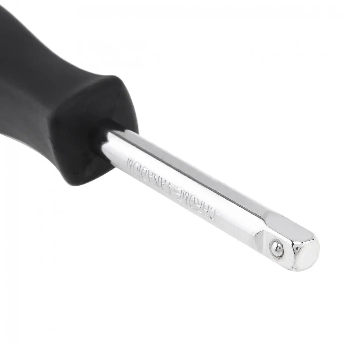 Особенность:-Быстро затягивает и ослабляет застежки.-Квадратный привод с внутренней резьбой 1/4 дюйма на конце ручки.-Сильный и прочный крутящий момент.-Может быть подключен к небольшим вылетающим храповым гаечным ключам, скользящим стержням, разъемам AD и т. д.-Подходит для использования в узком пространстве.
