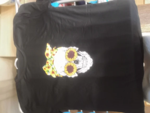 Товар получила за месяц. Качество ткани ужасное да и крой футболки в кривь все с нитками наружу. 100 р красная цена за картинку. Размер не соответствует размерной таблице. Себя с лентой вымиряла, в итоге пришла безразмерная.