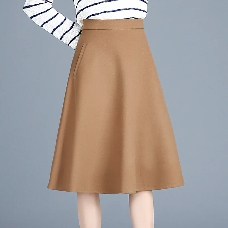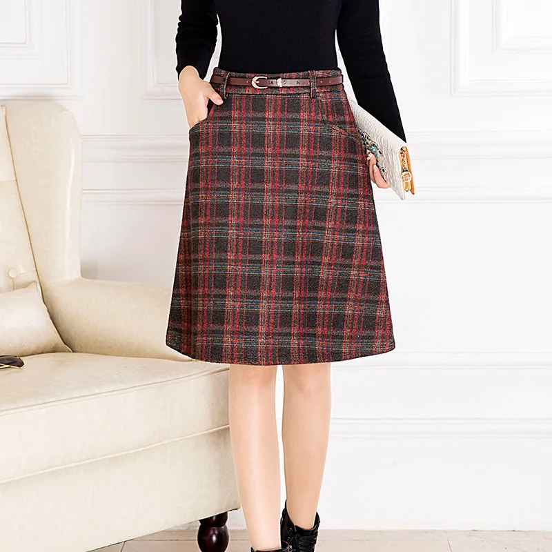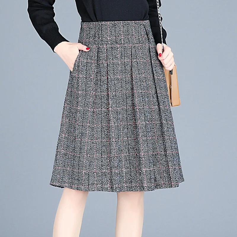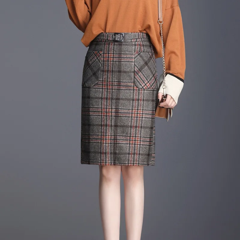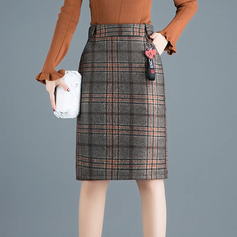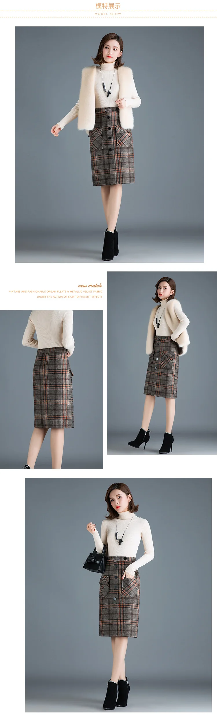 Женская шерстяная юбка с карманами, однобортная клетчатая юбка с высокой талией в Корейском стиле, весна 2022