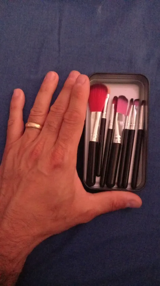 Все продукты прибыли в хорошо запечатанной и защищенной картонной коробке. Эта маленькая коробка немного поцарапается, кисти имеют милые цвета, волосы мягкие и цвета очень забавные, они маленькие, но идеально подходят для переноски в сумке; он прибыл быстро в Мексику, я очень рад получить их