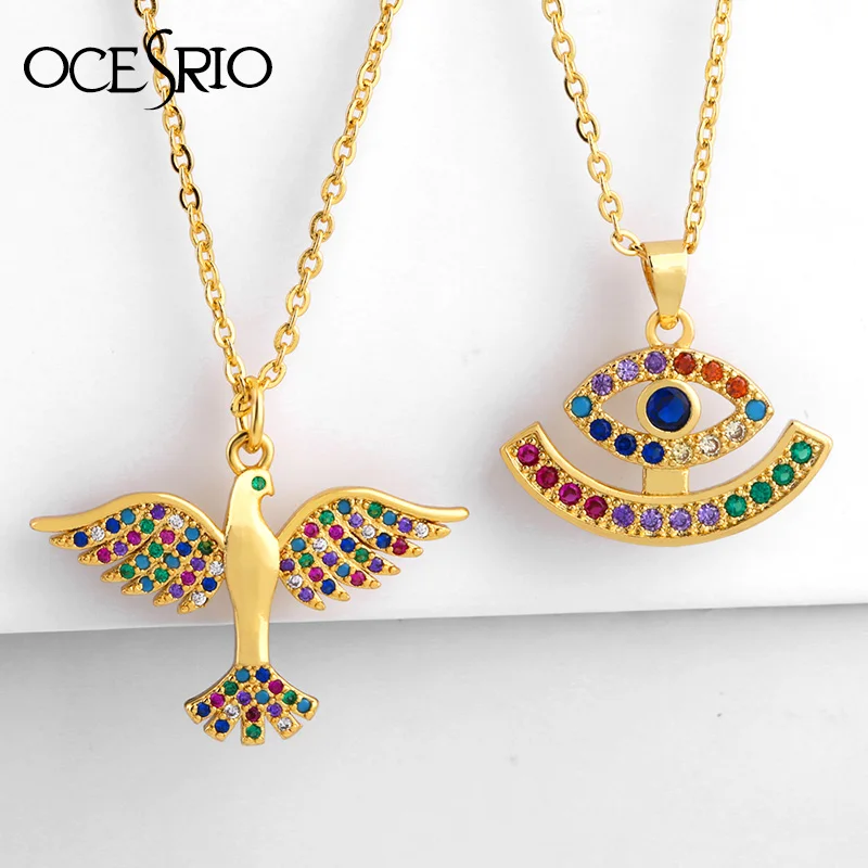 FLOLA CZ радужные ожерелья для женщин золотые ожерелья от сглаза с ...