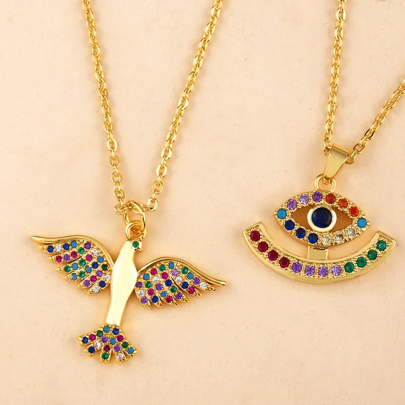 FLOLA турецкое золотое ожерелье с кулоном от сглаза для женщин CZ п...