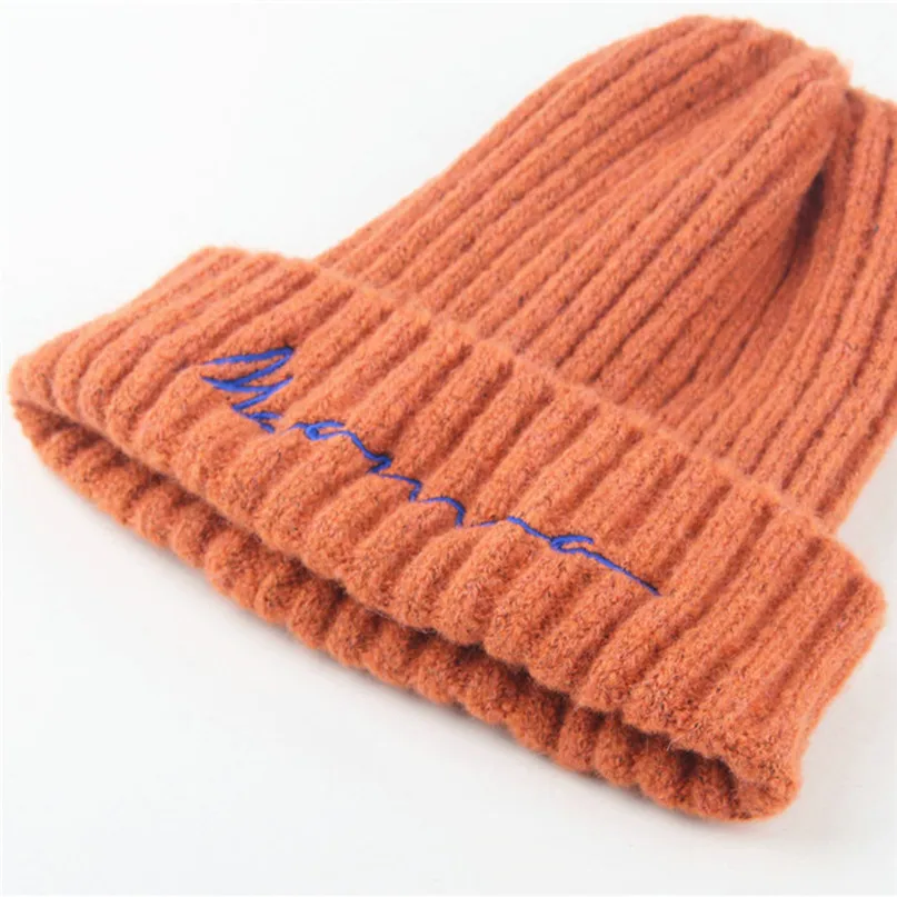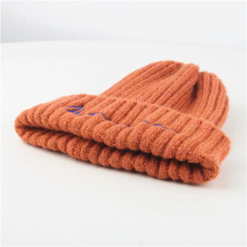 Детская однотонная вязаная шерстяная шапка унисекс, 50-54 см, с надписью, сохраняющая тепло и простая, зимняя популярная шапка, 30SE02