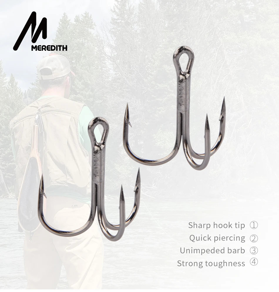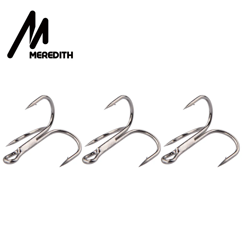 MEREDITH 20 шт.лот 4 #6 #8 # тройные рыболовные крючки из углеродистой стали, рыболовные крючки с зазубринами, супер острые тройные Крючки, аксессуары для морской снасти