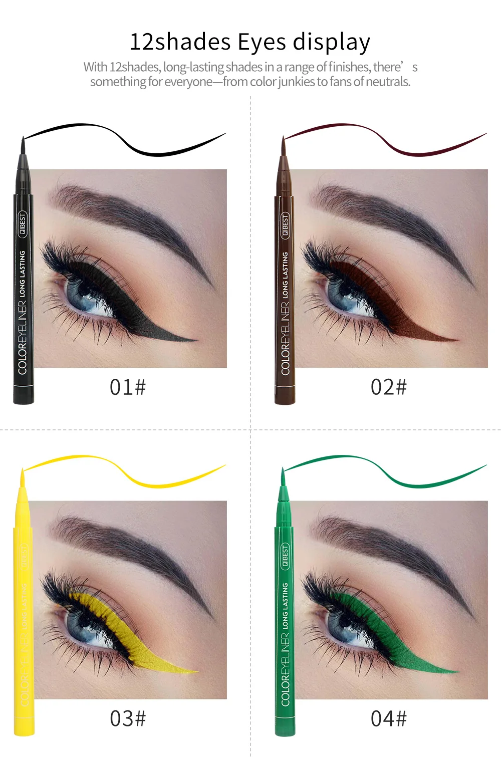 Жидкая подводка для глаз, 12 цветов, водостойкая, легко наносится, ...