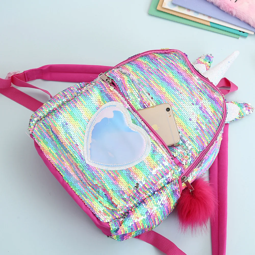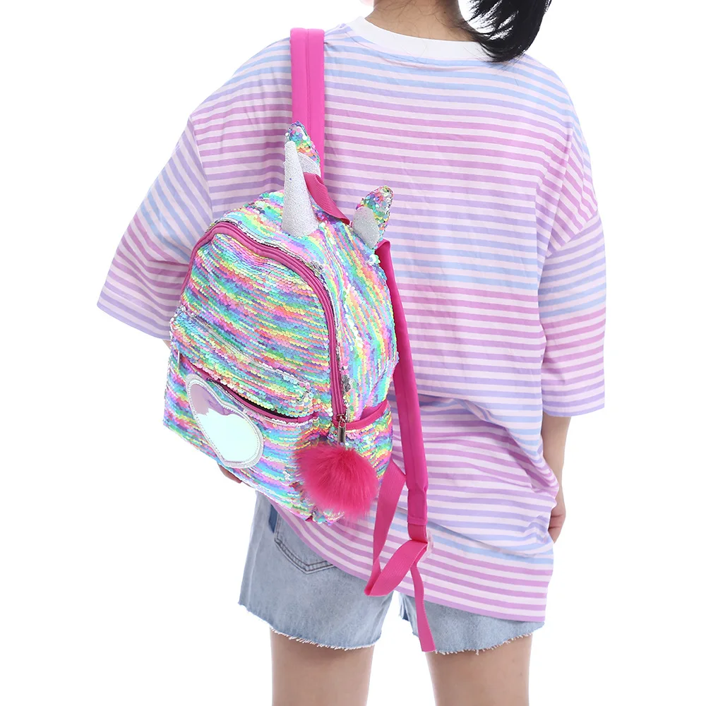 Детский рюкзак с блестками в виде единорога, Детский рюкзак для девочек-подростков