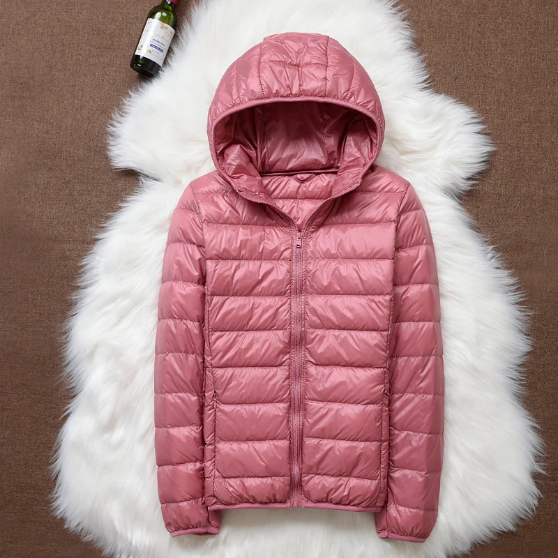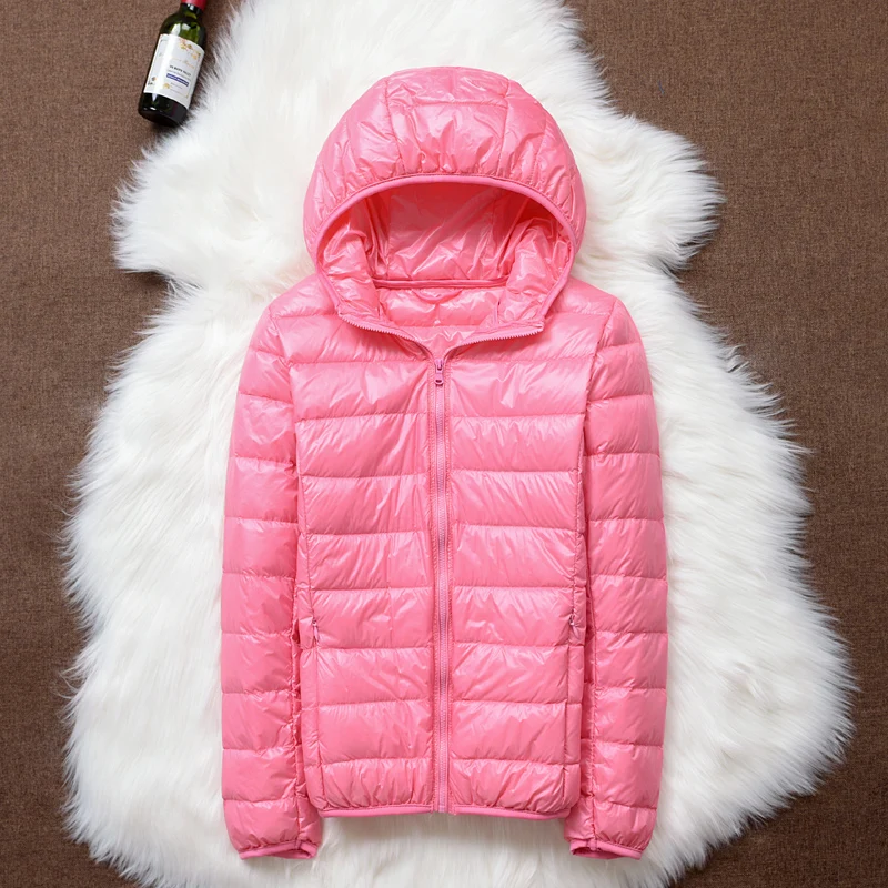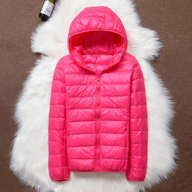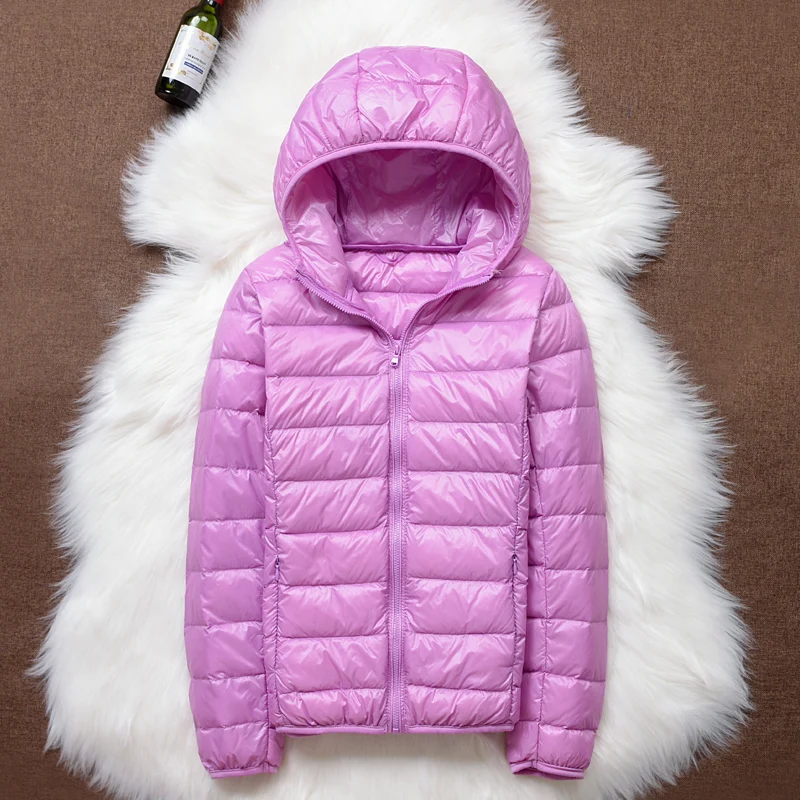 Пуховик женский ультралегкий, тонкий пуховик с капюшоном, на белом утином пуху, теплая парка с длинным рукавом, портативная верхняя одежда, зима