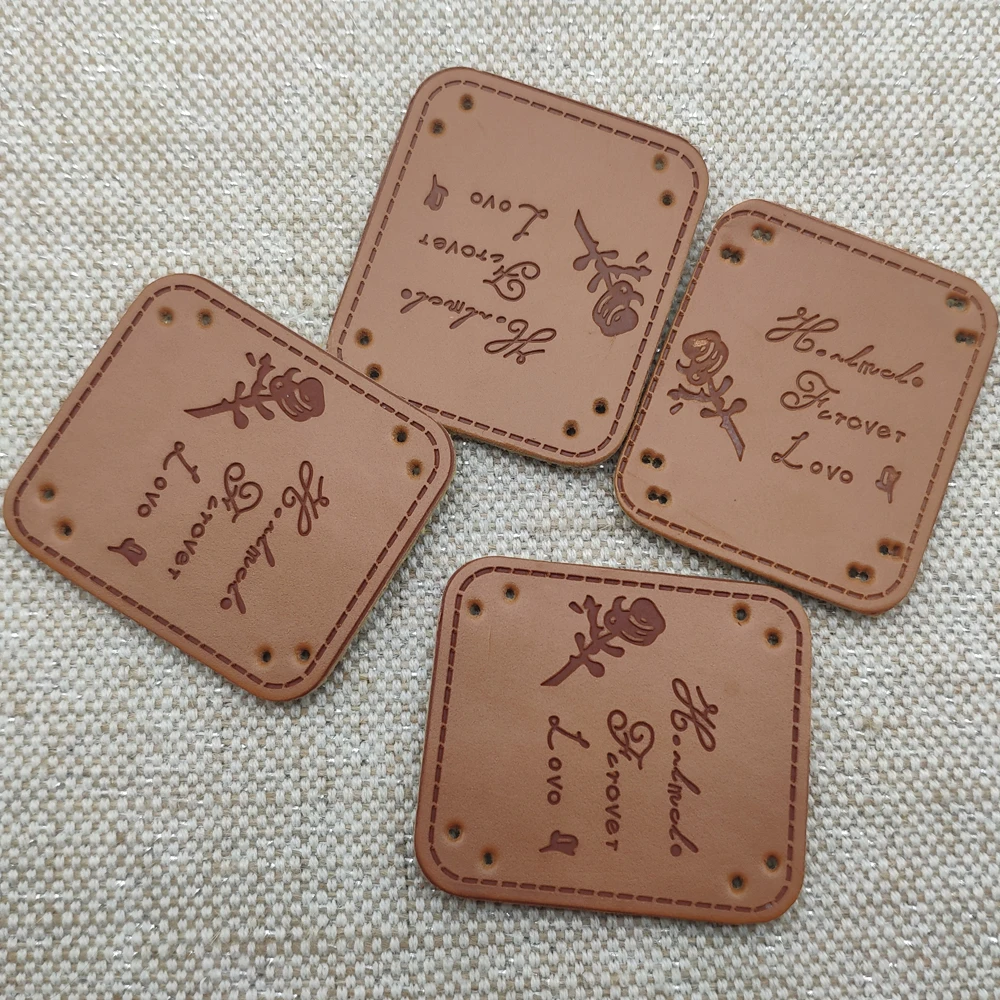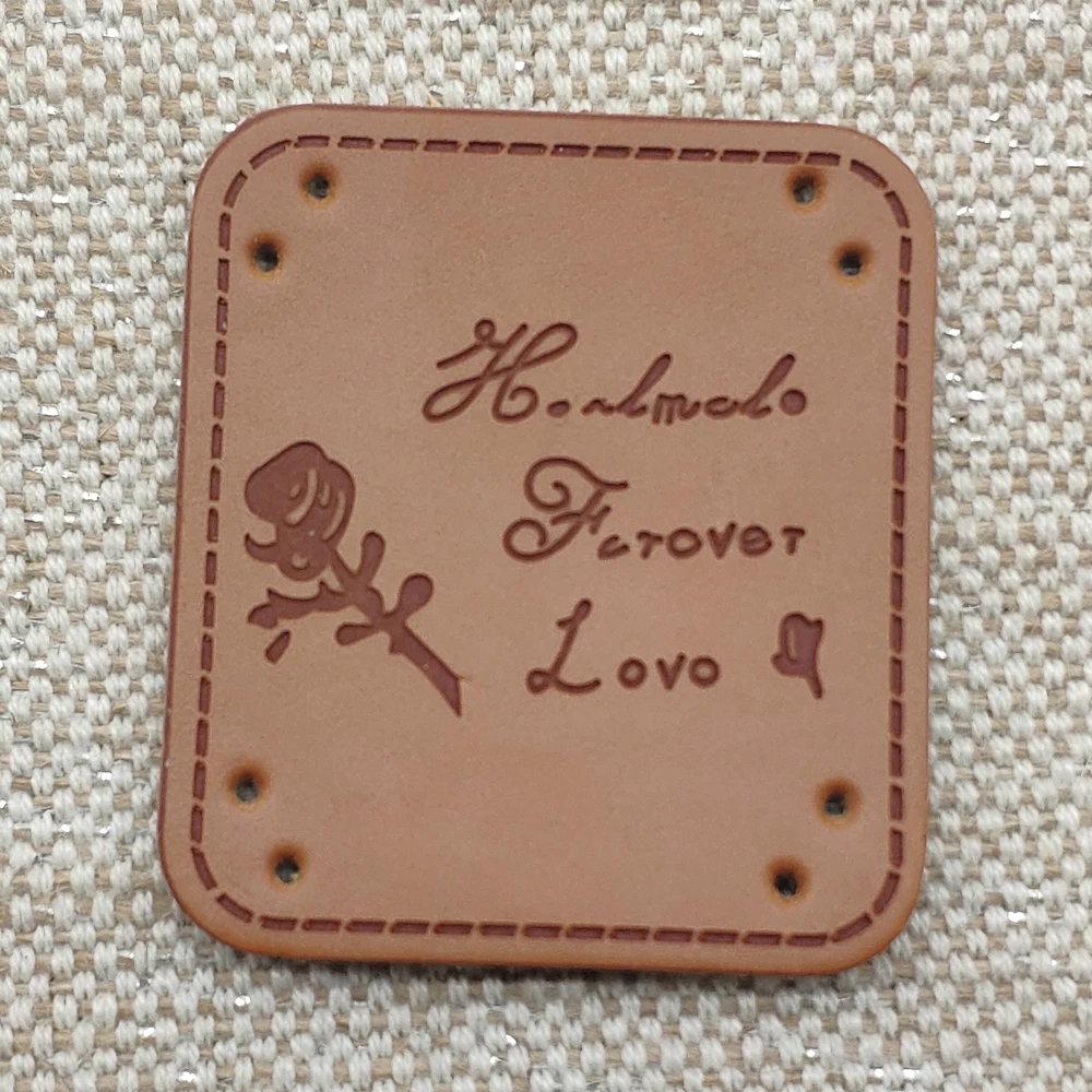 Кожаные этикетки для одежды ручной работы, нашивка из искусственной кожи с розой для одежды, рюкзака, этикетка ручной работы для подарка