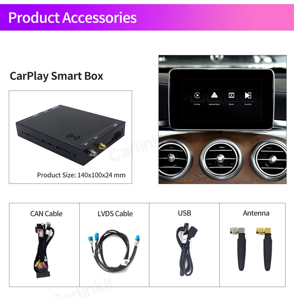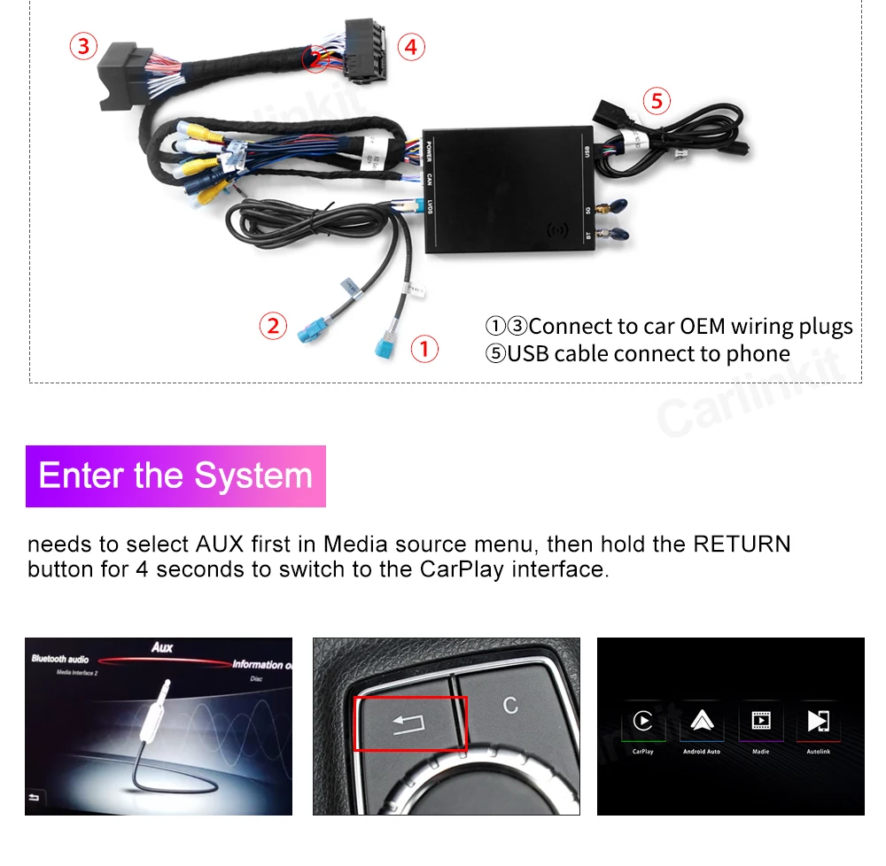 ❤Перед покупкой, пожалуйста, свяжитесь со службой поддержки клиентов и позвольте Carlinkit определить, подходит ли продукт для вашего автомобиля.1. Какая модель и год вашего Mercedes-Benz?2. Активирует ли ваш Mercedes-Benz AUX?3. Какой размер экрана вашего автомобиля?4. Пожалуйста, отправьте фото главного меню вашего автомобиля в службу поддержки клиентов.