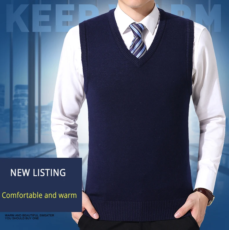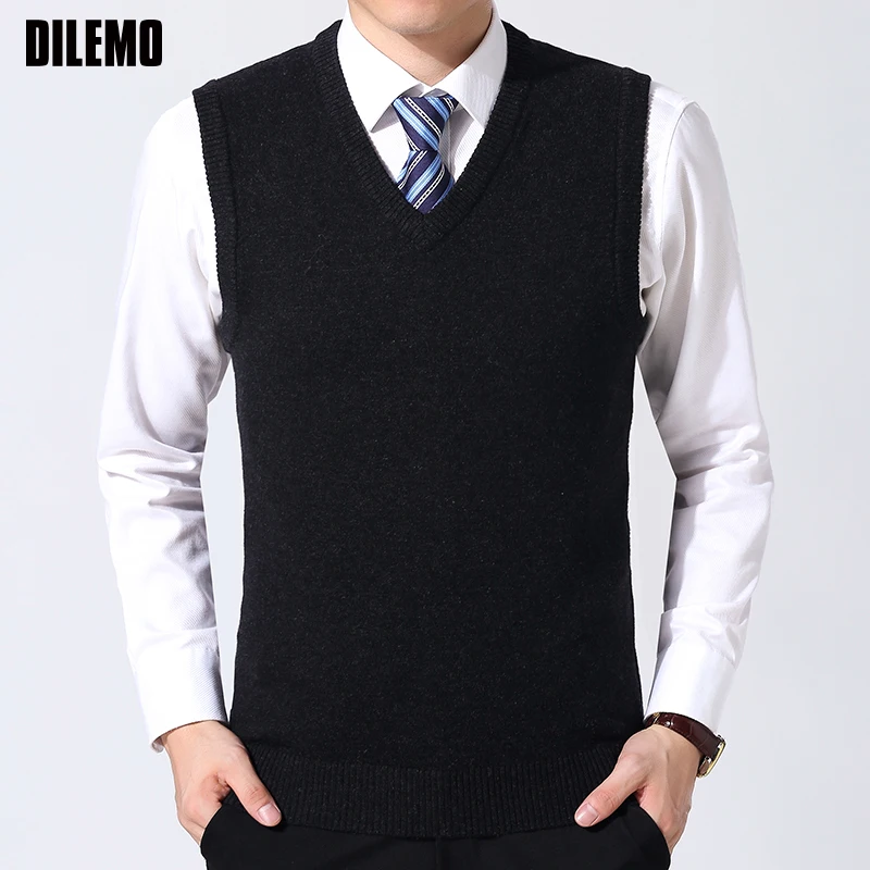 6% шерсть, модный свитер без рукавов для мужчин, кардиган с v-образ...