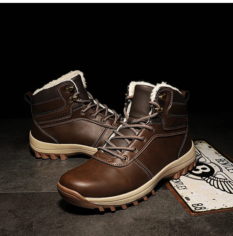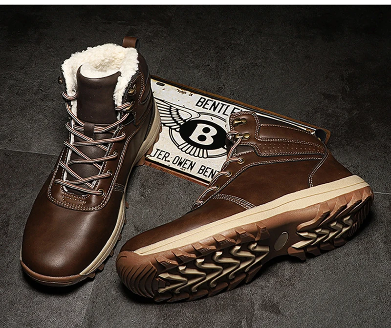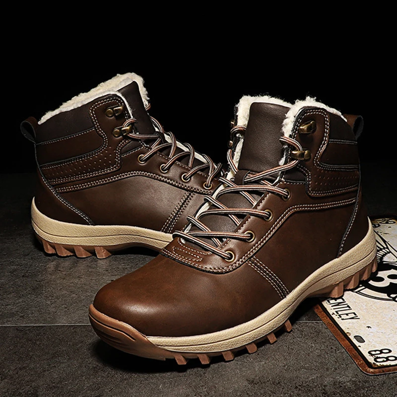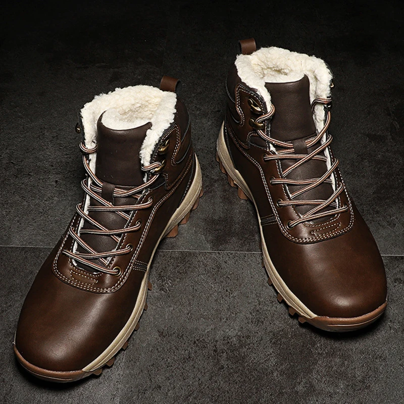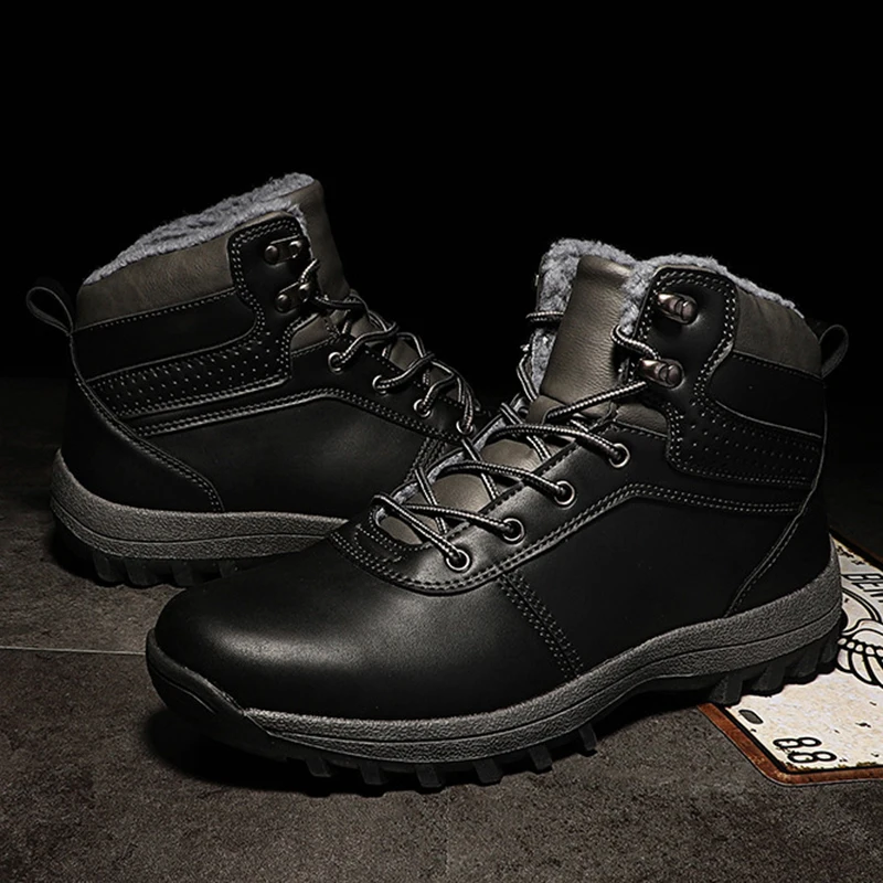 Мужские ботинки, зимние водонепроницаемые ботинки с плюшевой подкла...