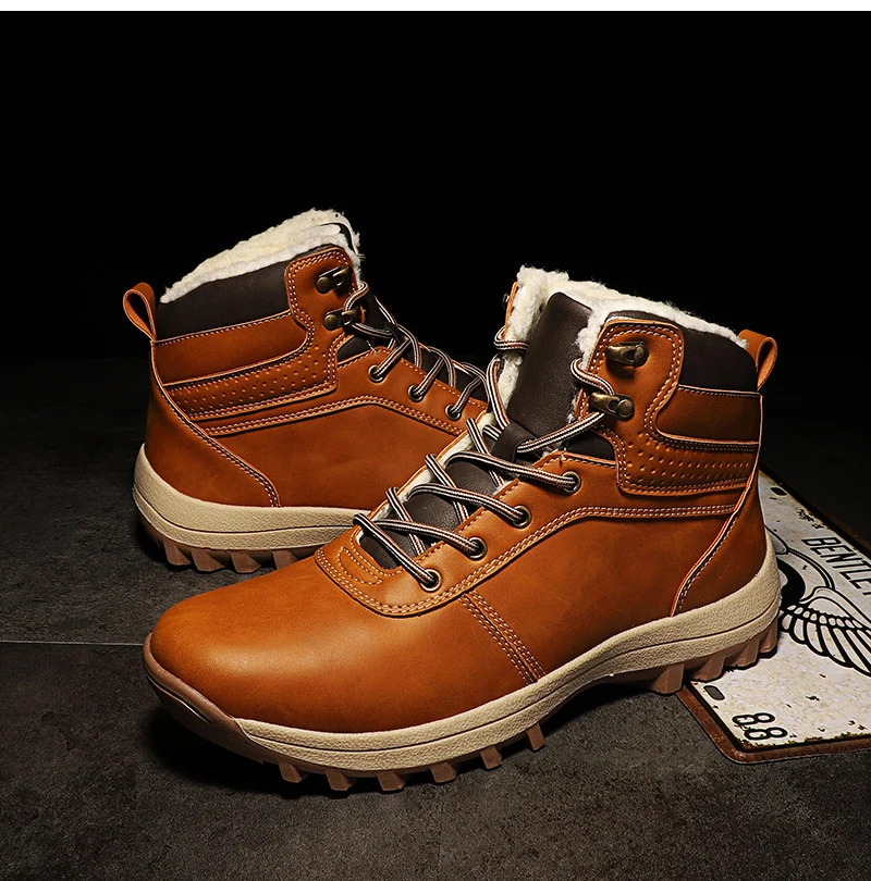 2019 г. Новые Нескользящие мужские Ботильоны из искусственной кожи мужские ботинки высокие супер теплые плюшевые зимние ботинки Уличная Повседневная мужская зимняя обувь