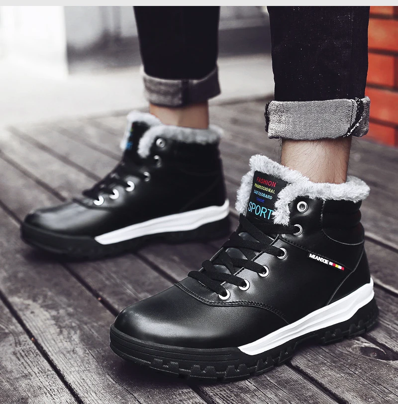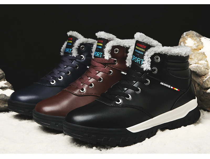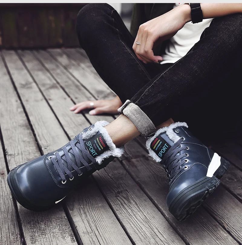 Зимние мужские зимние ботинки водонепроницаемые мужские ботинки мужские меховые толстые плюшевые теплые зимние сапоги мужские короткие ботинки размер