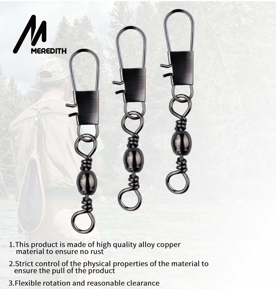 Рыболовные Вертлюги MEREDITH 50 шт.лот, коннекторы для лески, вертлюг для рыболовной приманки с зажимом