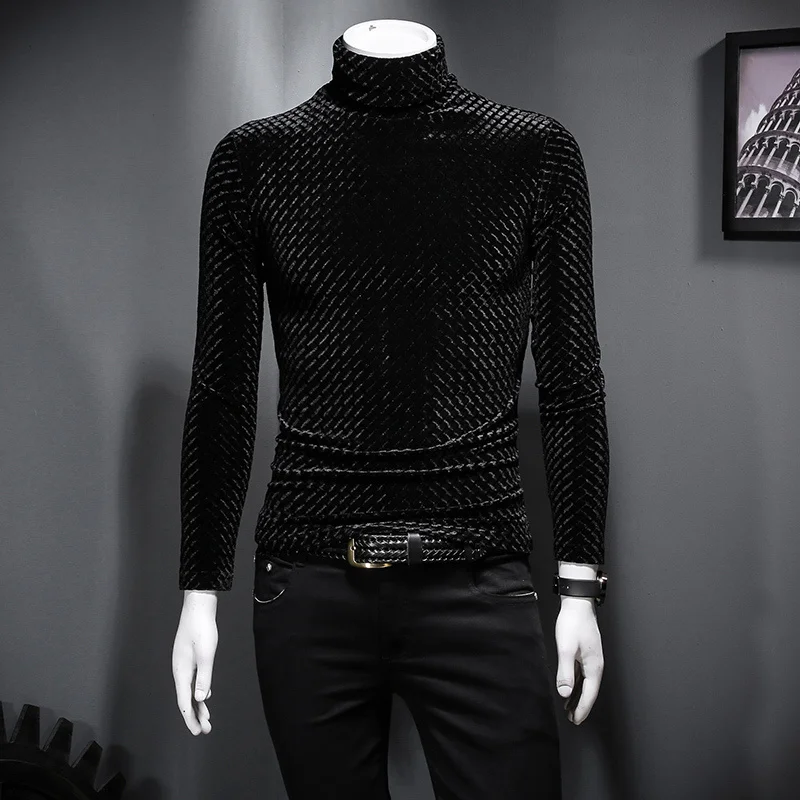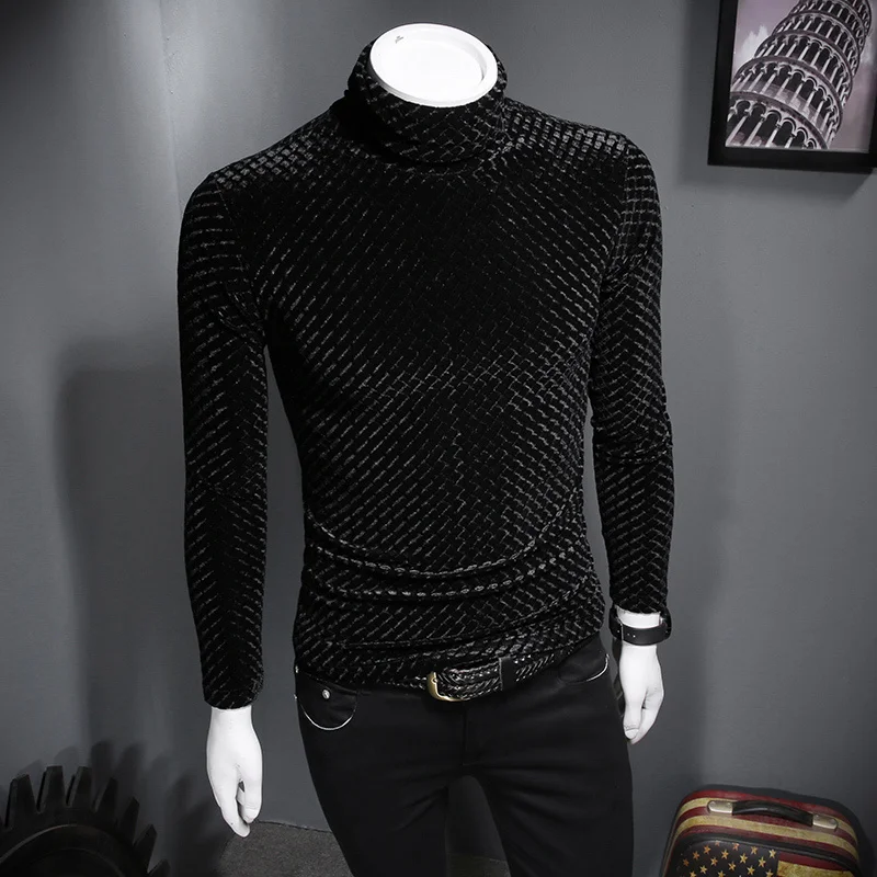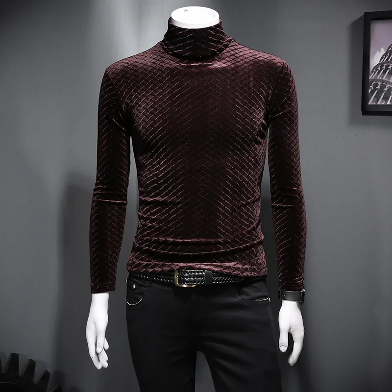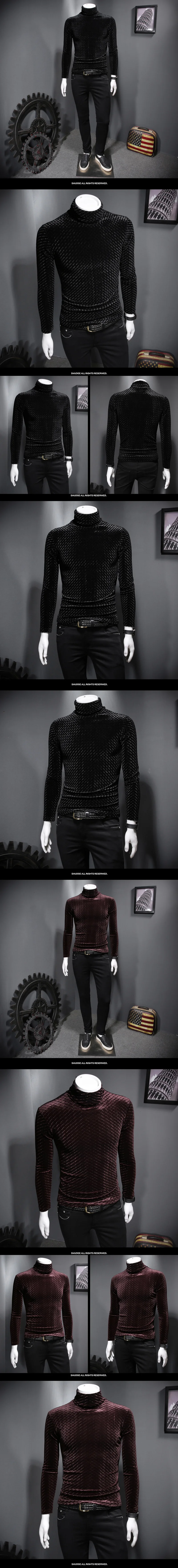 Футболка мужская бархатная с длинным рукавом, стильная повседневная фланелевая рубашка, пуловер с высоким воротом, трикотажная футболка с рукавом т, на осень