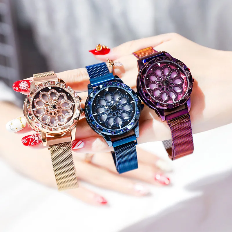 часы женские наручные 2021 часы магнитный ремешок, крутится циферблат