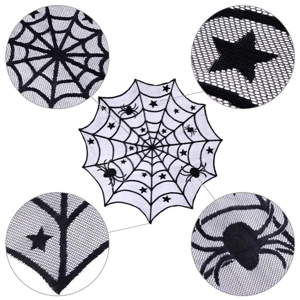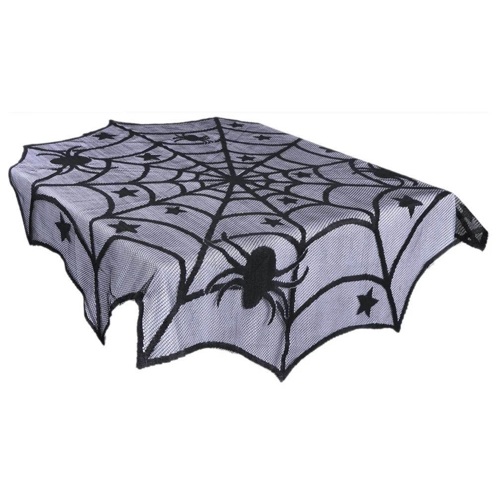 Черная кружевная скатерть Spiderweb для Хэллоуина, скатерти для стола, подвесное окно, украшение для вечевечерние на Хэллоуин