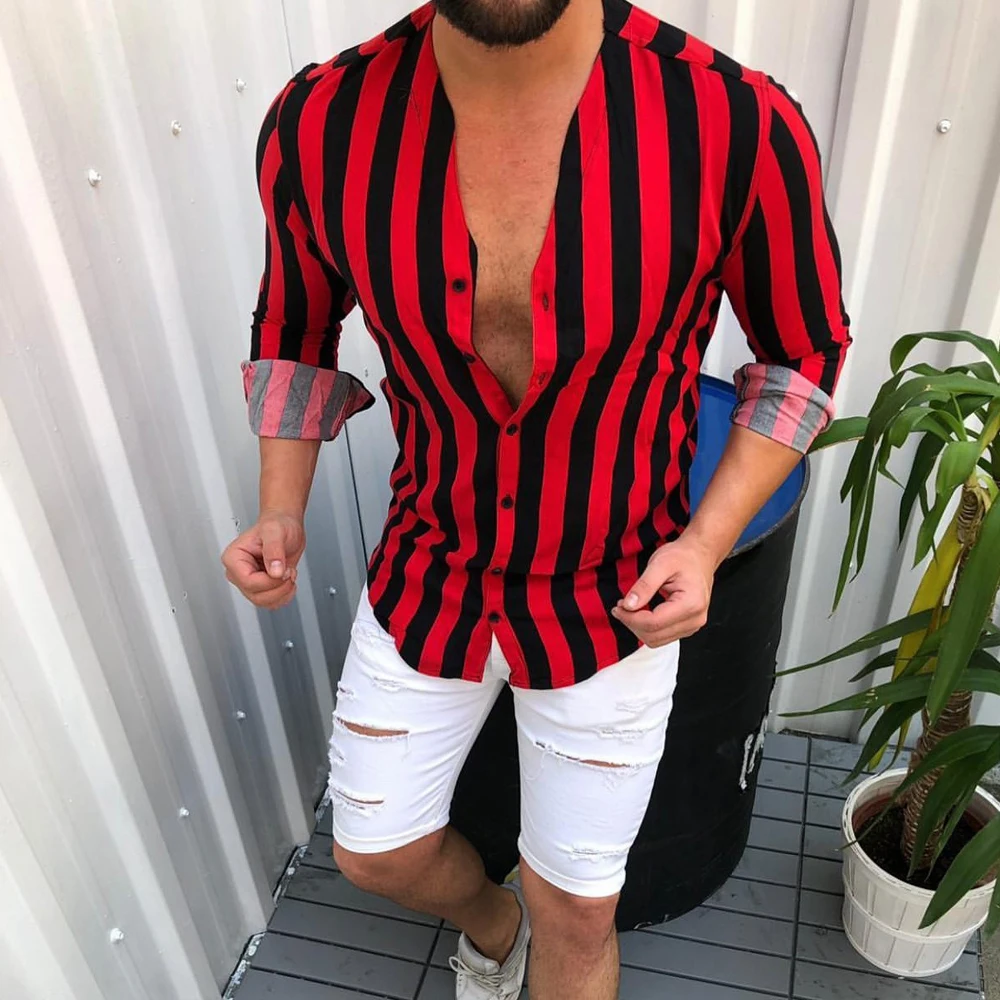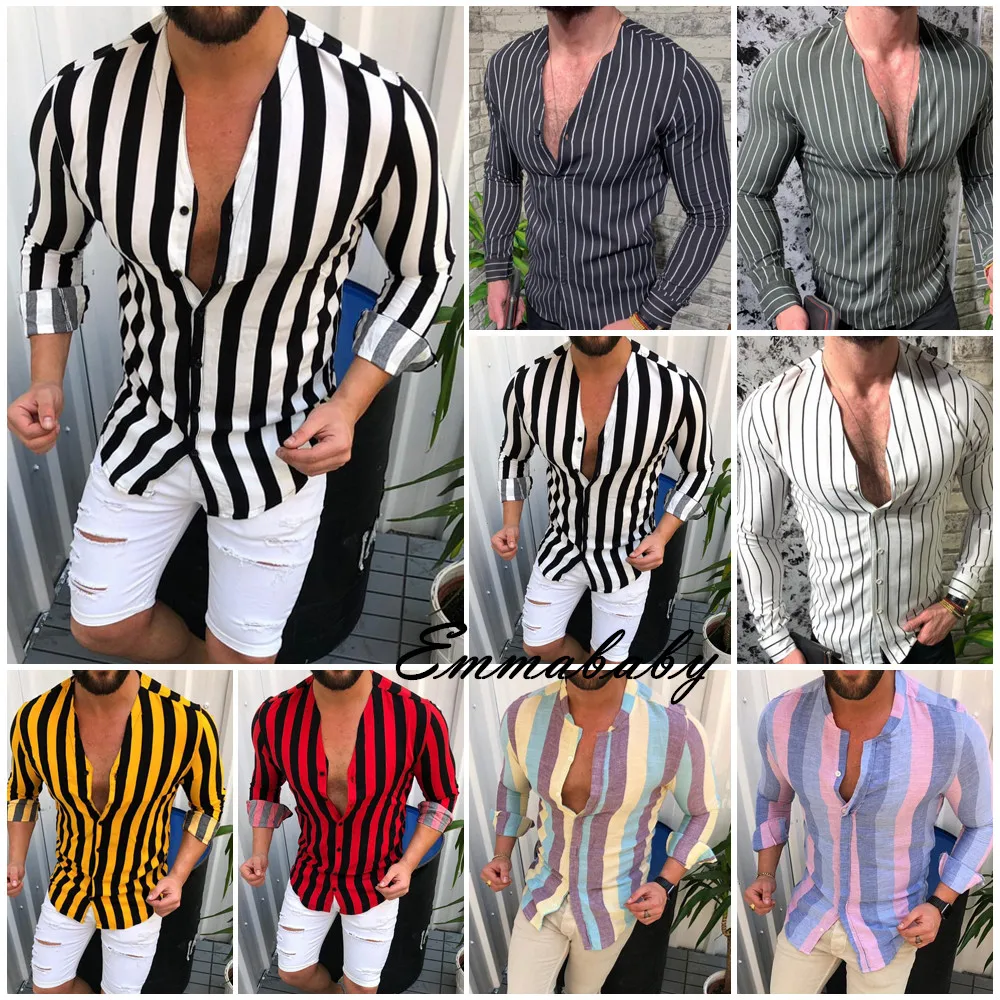 Модная мужская Роскошная Повседневная Стильная приталенная Повседневная рубашка с длинным рукавом, Повседневная футболка в полоску для работы и отдыха